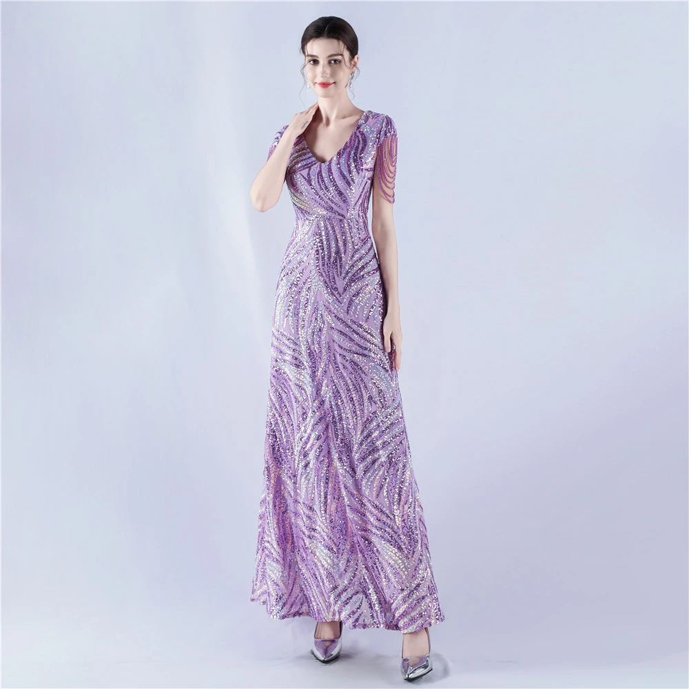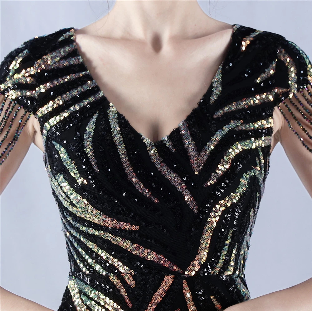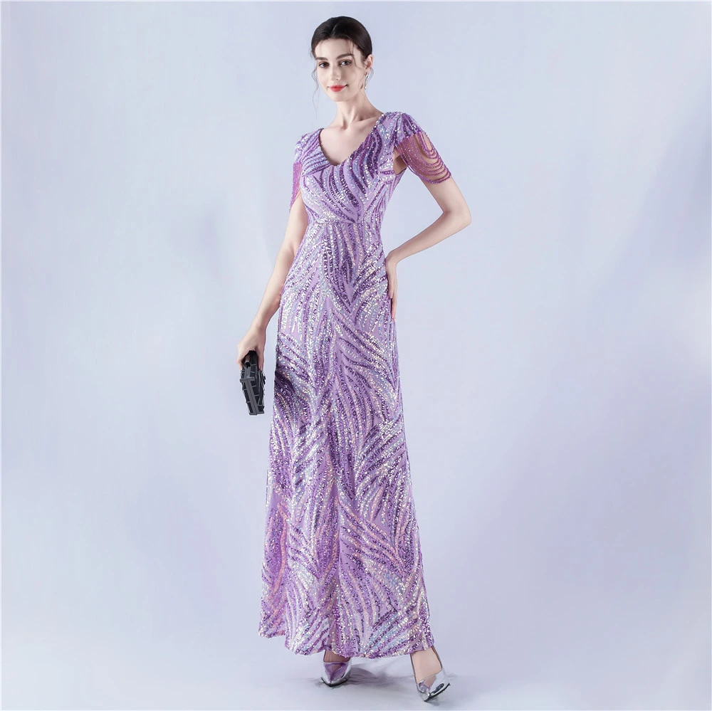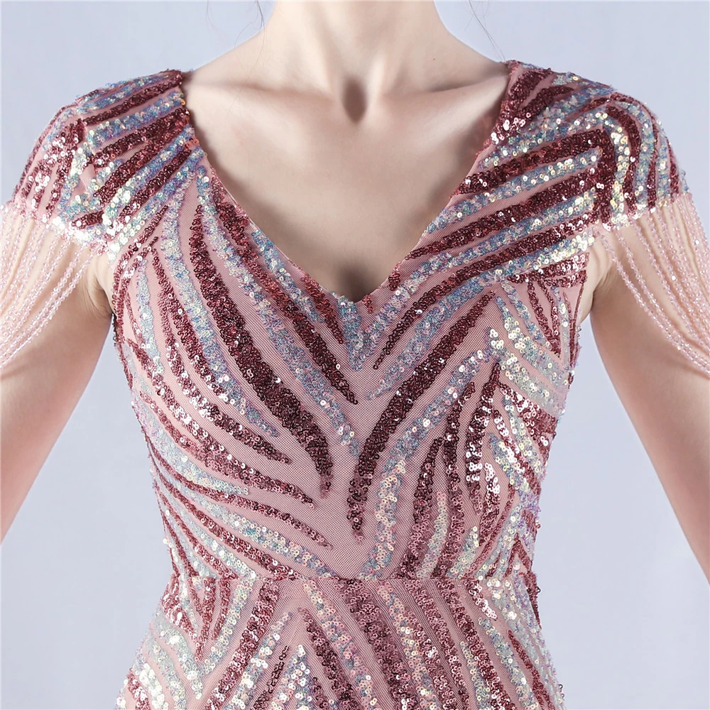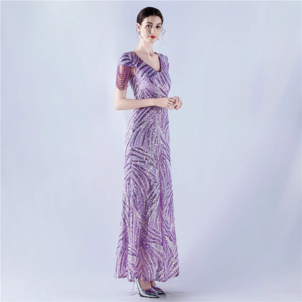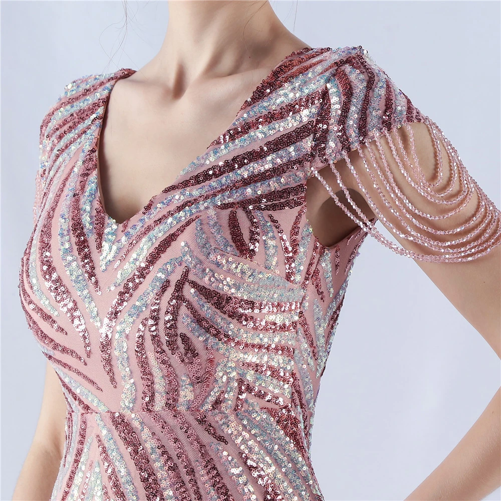 A-Line Big Swing Dress Skirt Encrypted Sequined Craft Beaded Evening Dress