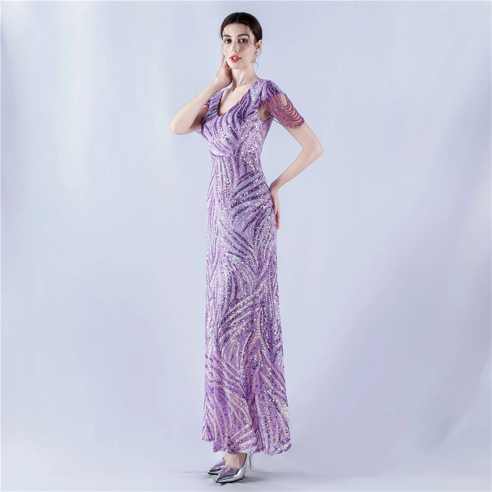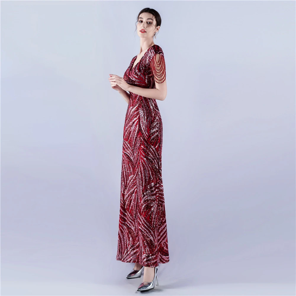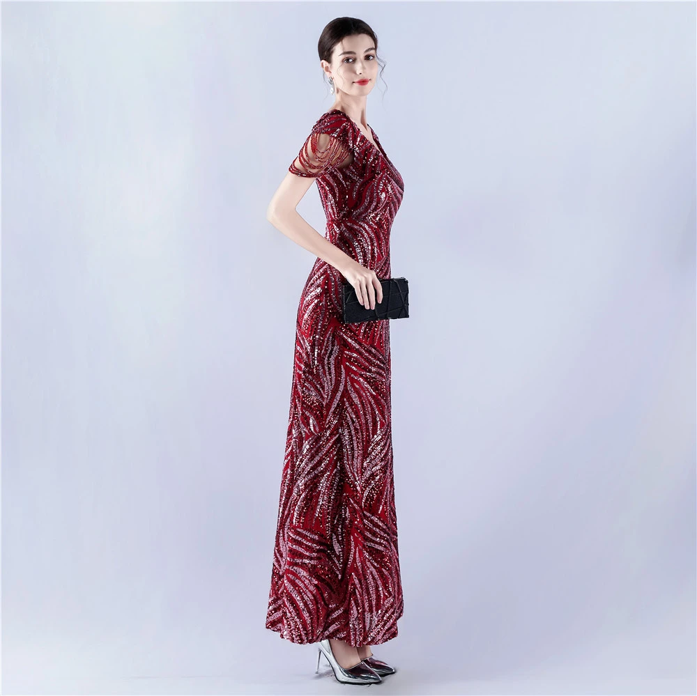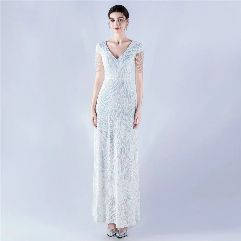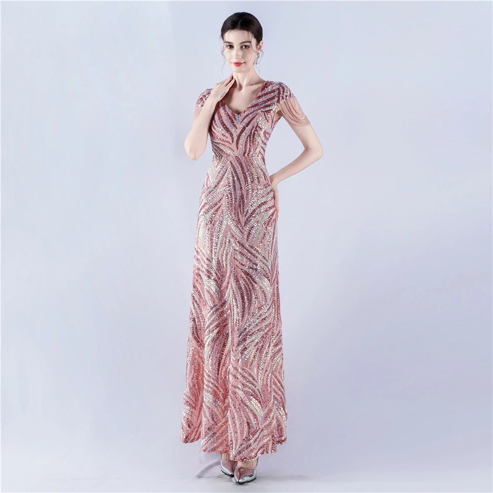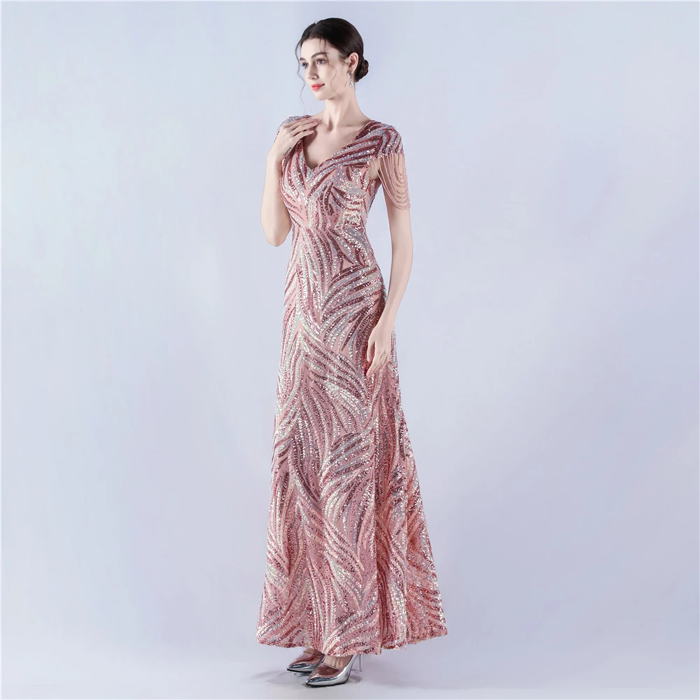 A-Line Big Swing Dress Skirt Encrypted Sequined Craft Beaded Evening Dress