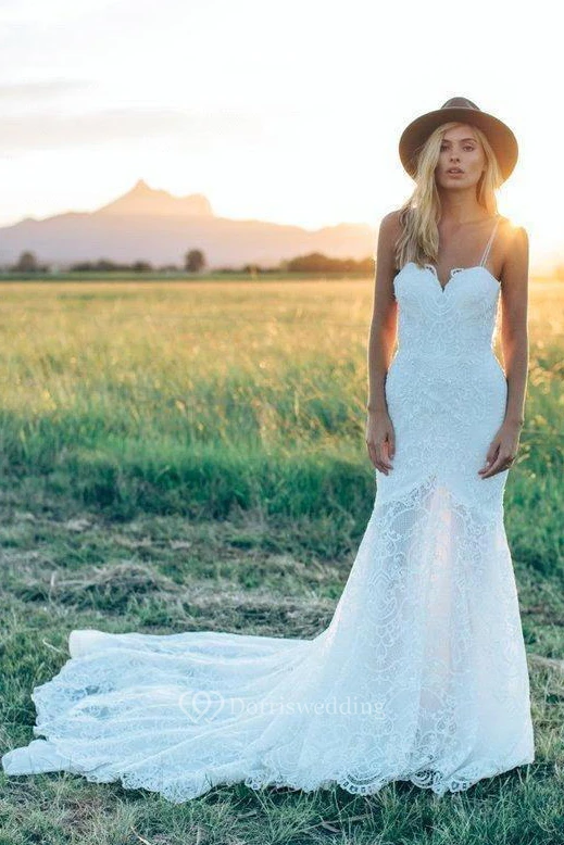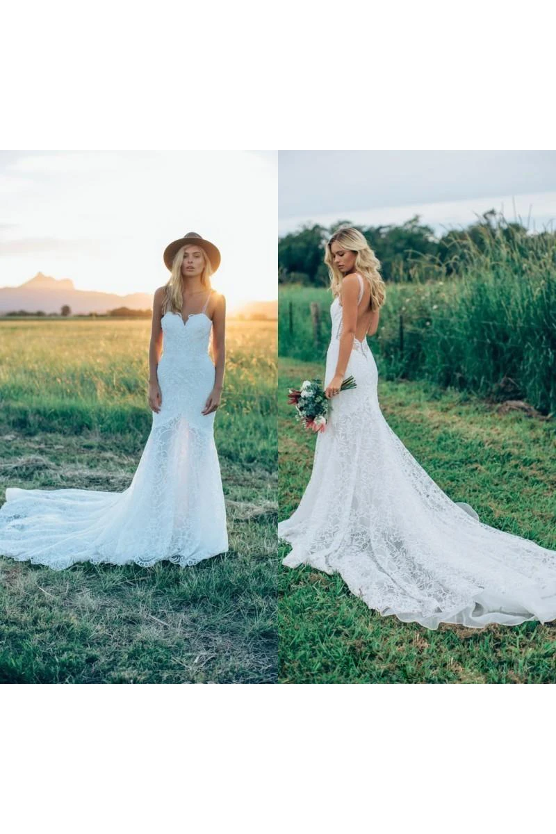 A Line Bohemian Low V Back Full Lace Beach Bridesmaid Dresses Garden Bridal Gowns