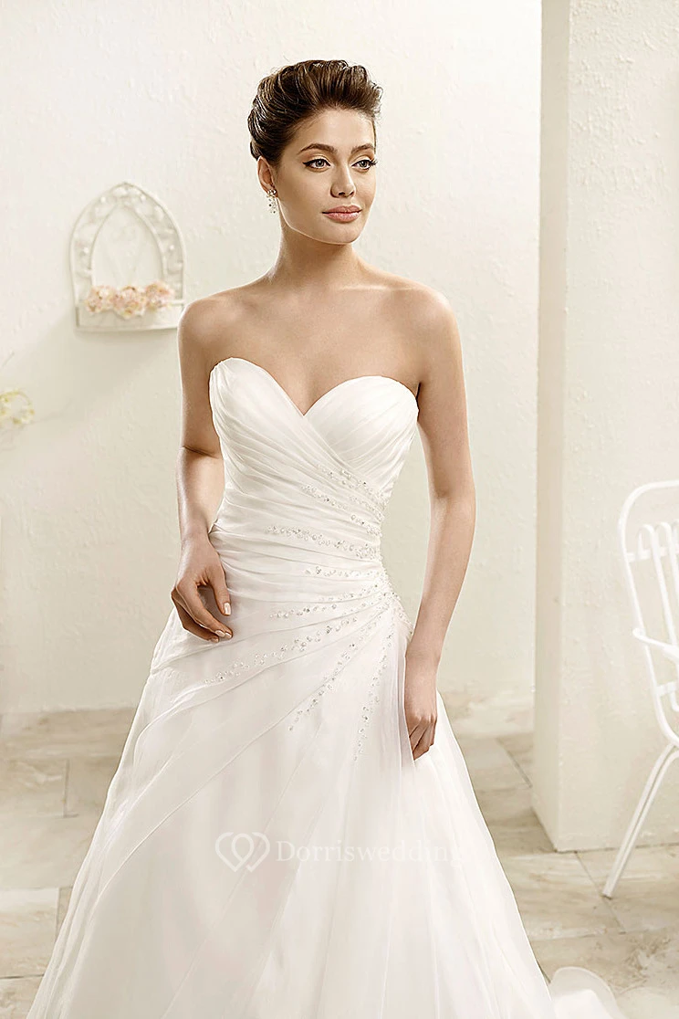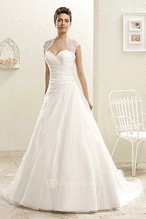 A-Line Cap-Sleeve Sweetheart Beaded Long Wedding Dress With Cape And Criss Cross