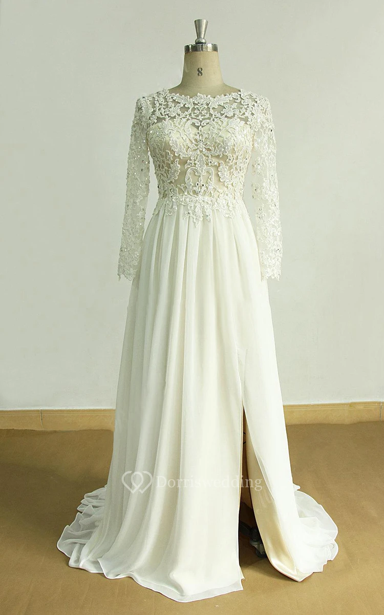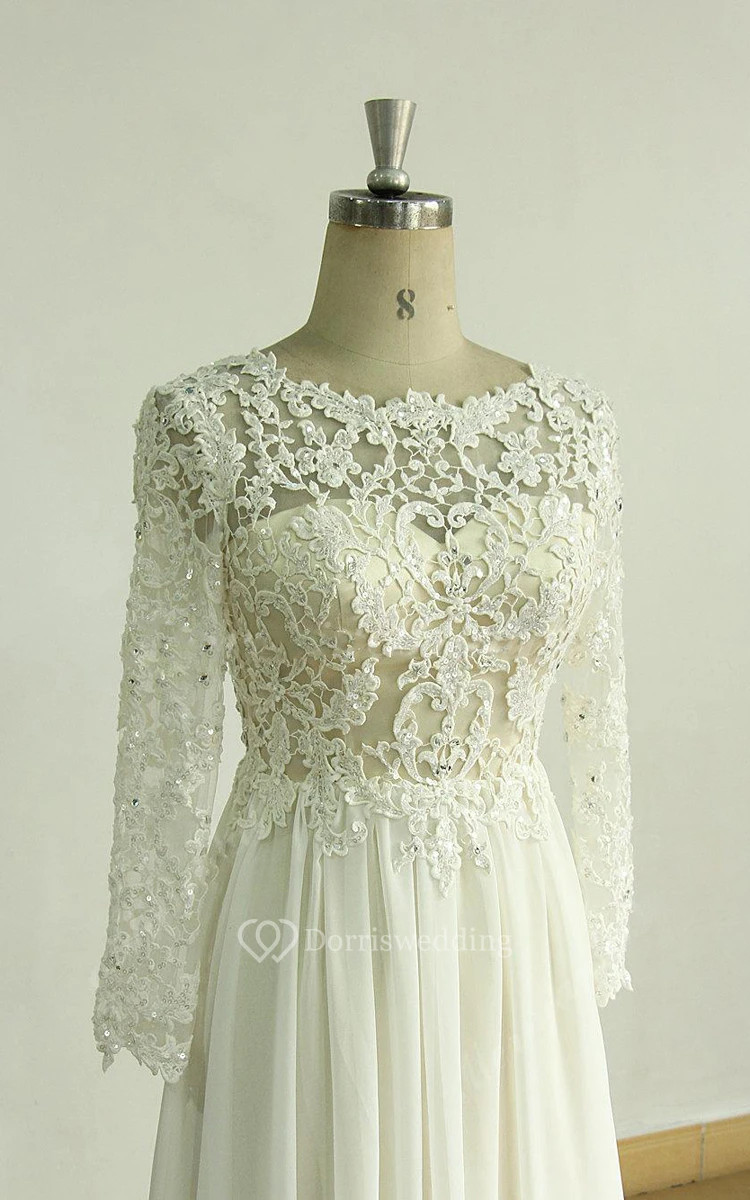 A-Line Chiffon Lace Satin Weddig Long Sleeve Bridesmaid Dress