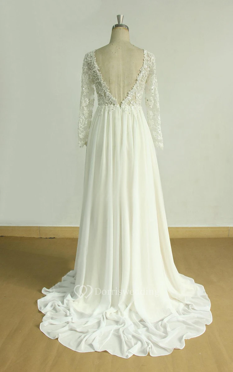 • Hemline/Train: Floor-length, Sweep/Brush Train