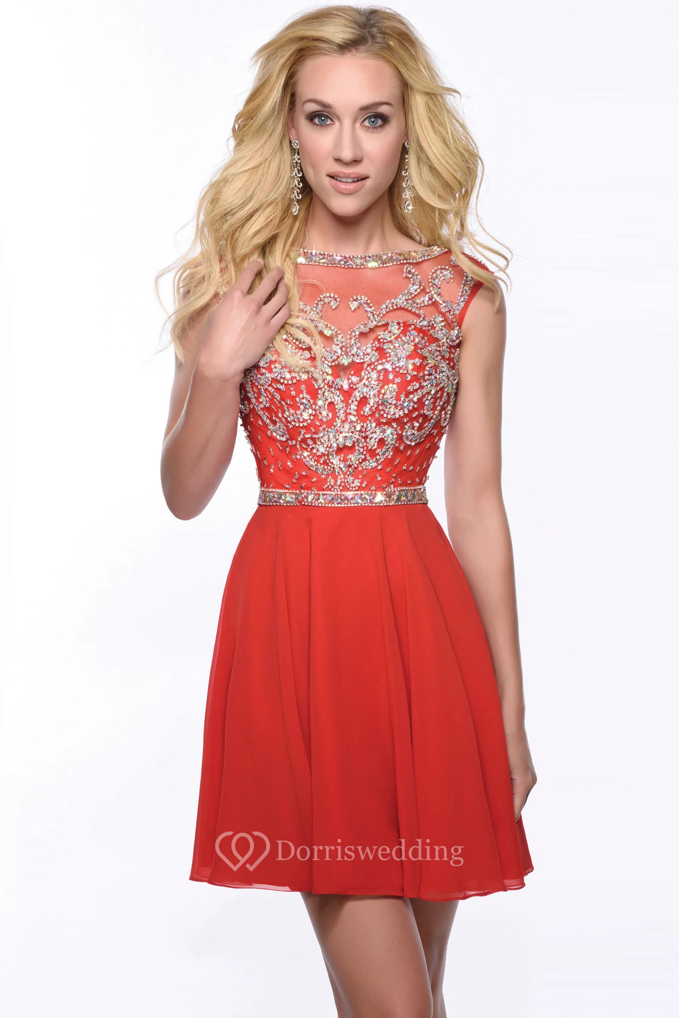A-Line Chiffon Cap Sleeve Homecoming Dress Featuring Shimmering Bodice