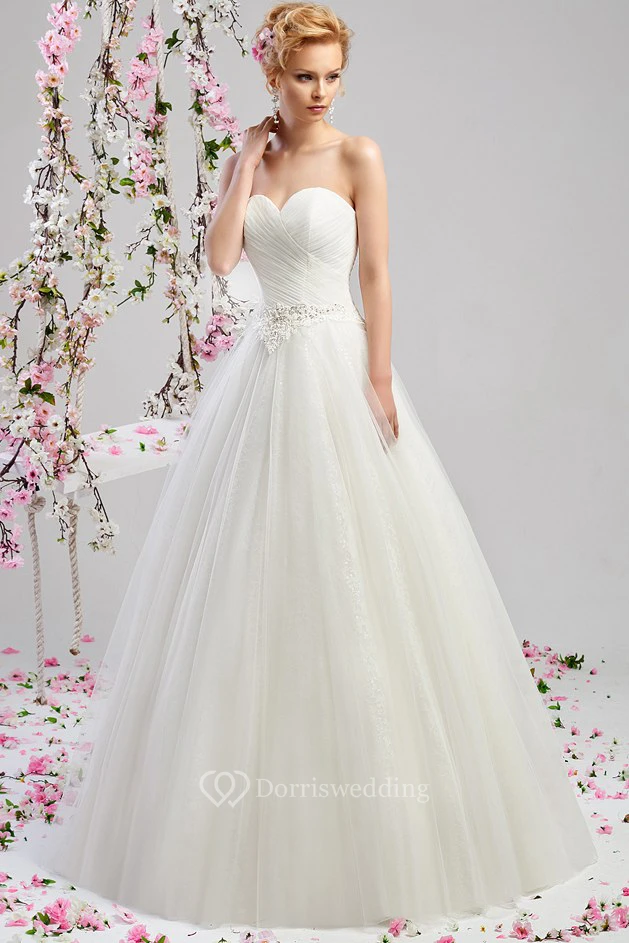 A-Line Criss-Cross Floor-Length Sweetheart Sleeveless Tulle Wedding Dress With Appliques
