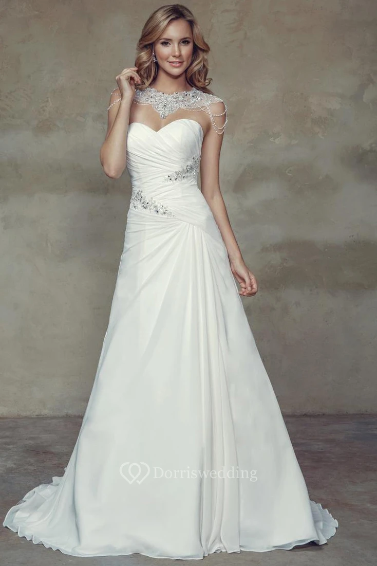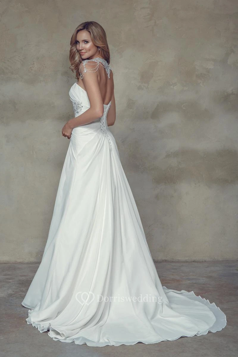 A-Line Criss-Cross Long Sweetheart Wedding Dress With Beading And Corset Back