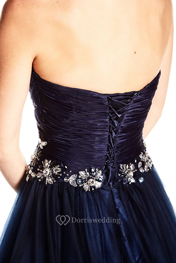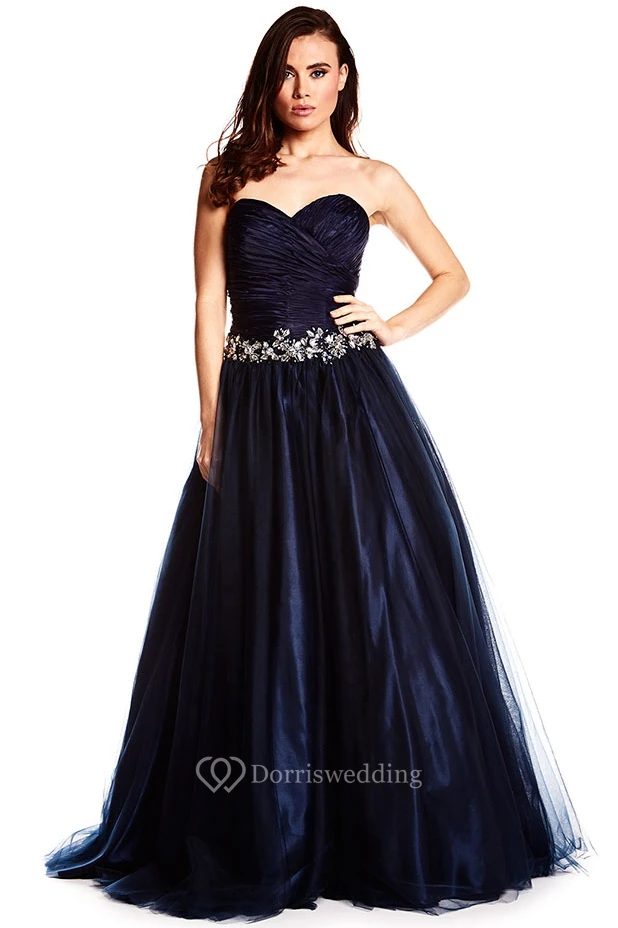 A-Line Criss-Cross Sweetheart Sleeveless Long Satin Prom Dress With Bow And Waist Jewellery