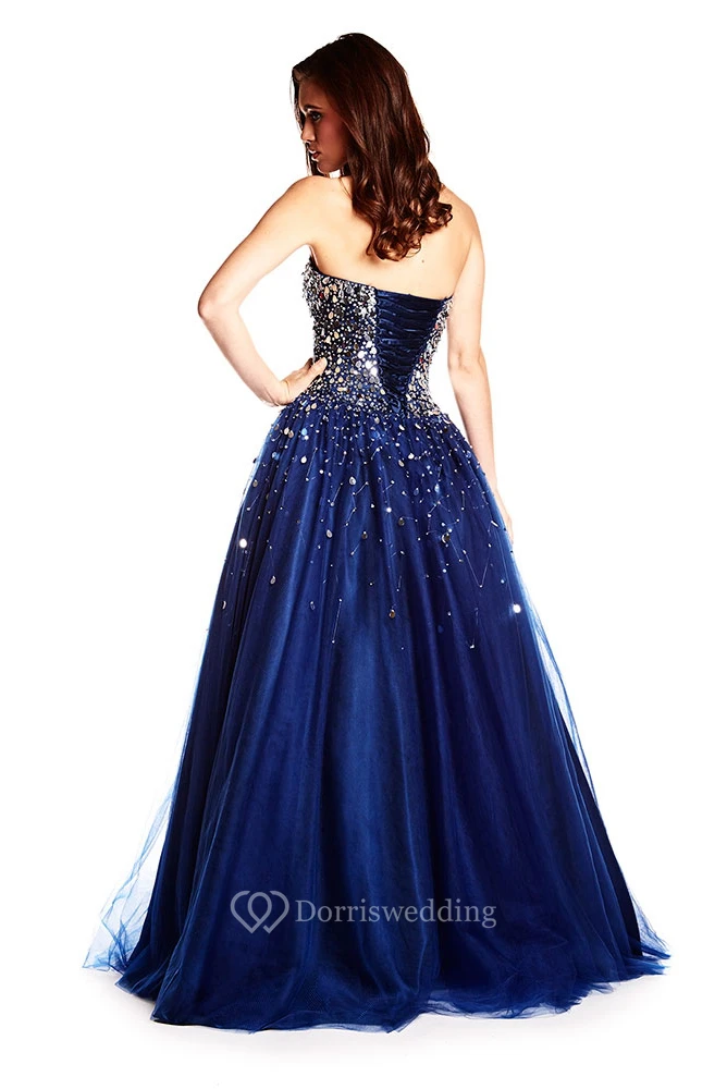 A-Line Crystal Sleeveless Floor-Length Strapless Tulle Prom Dress With Corset Back And Pleats