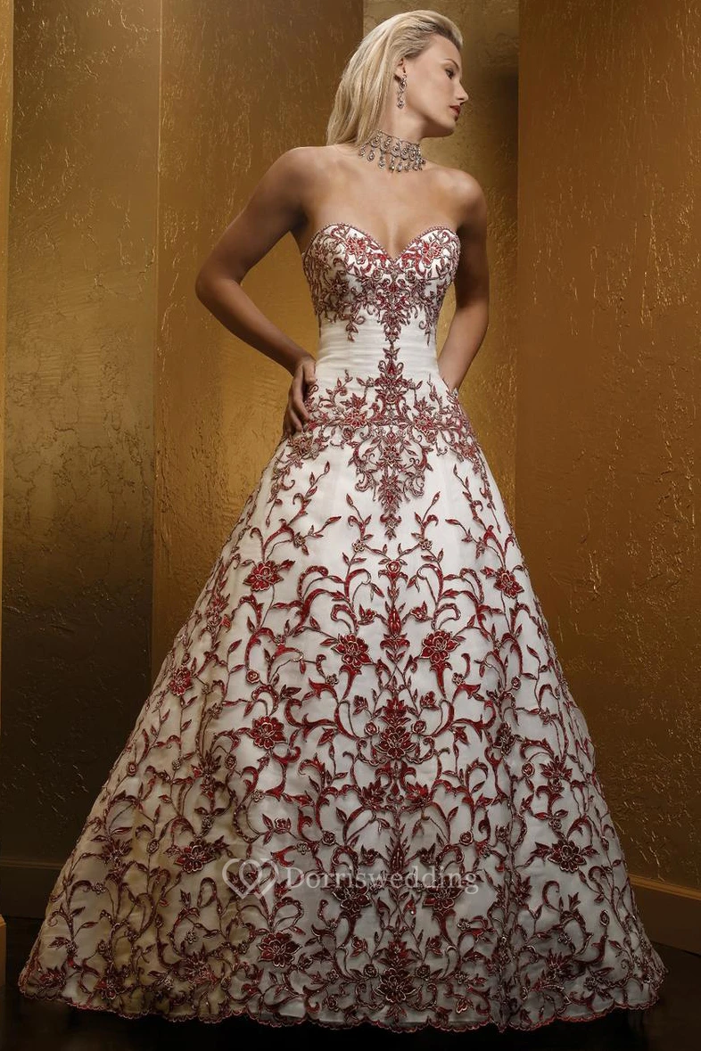 A-Line Embroidered Sweetheart Floor-Length Sleeveless Wedding Dress With Ruching And Beading