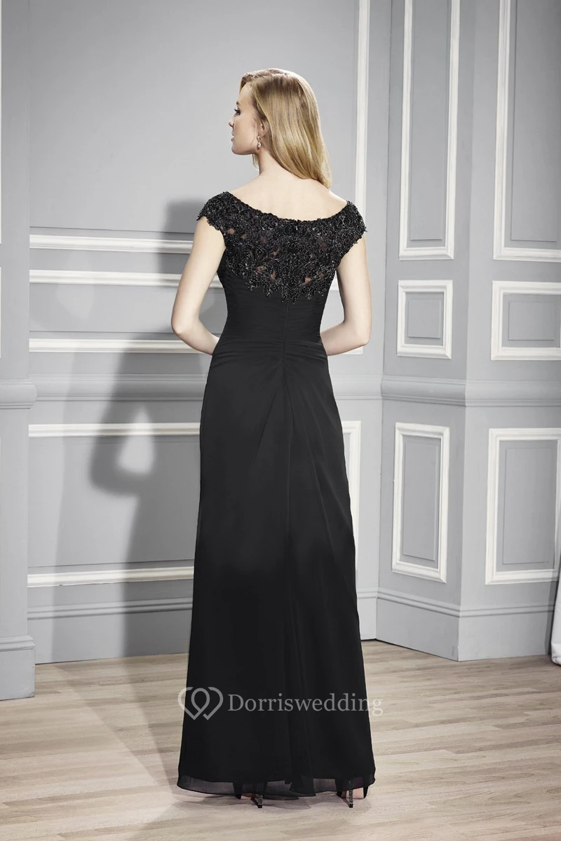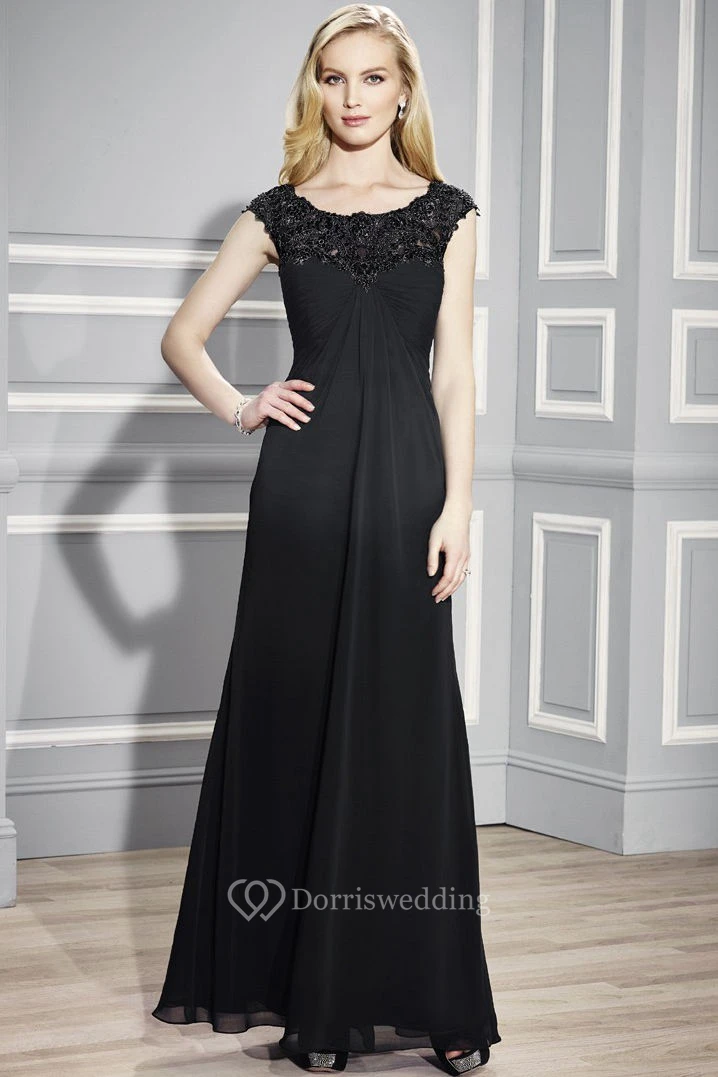 A-Line Empire Cap-Sleeve Scoop Floor-Length Appliqued Chiffon Formal Dress With Zipper Back