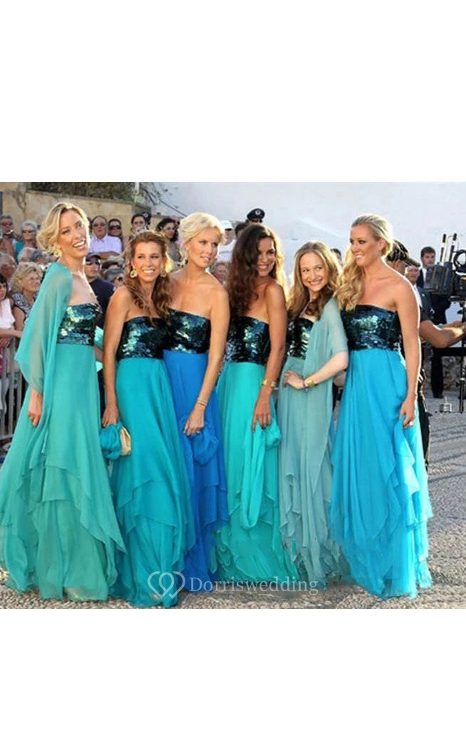 A-line Empire Floor-length Strapless Empire Chiffon Sequins Dress