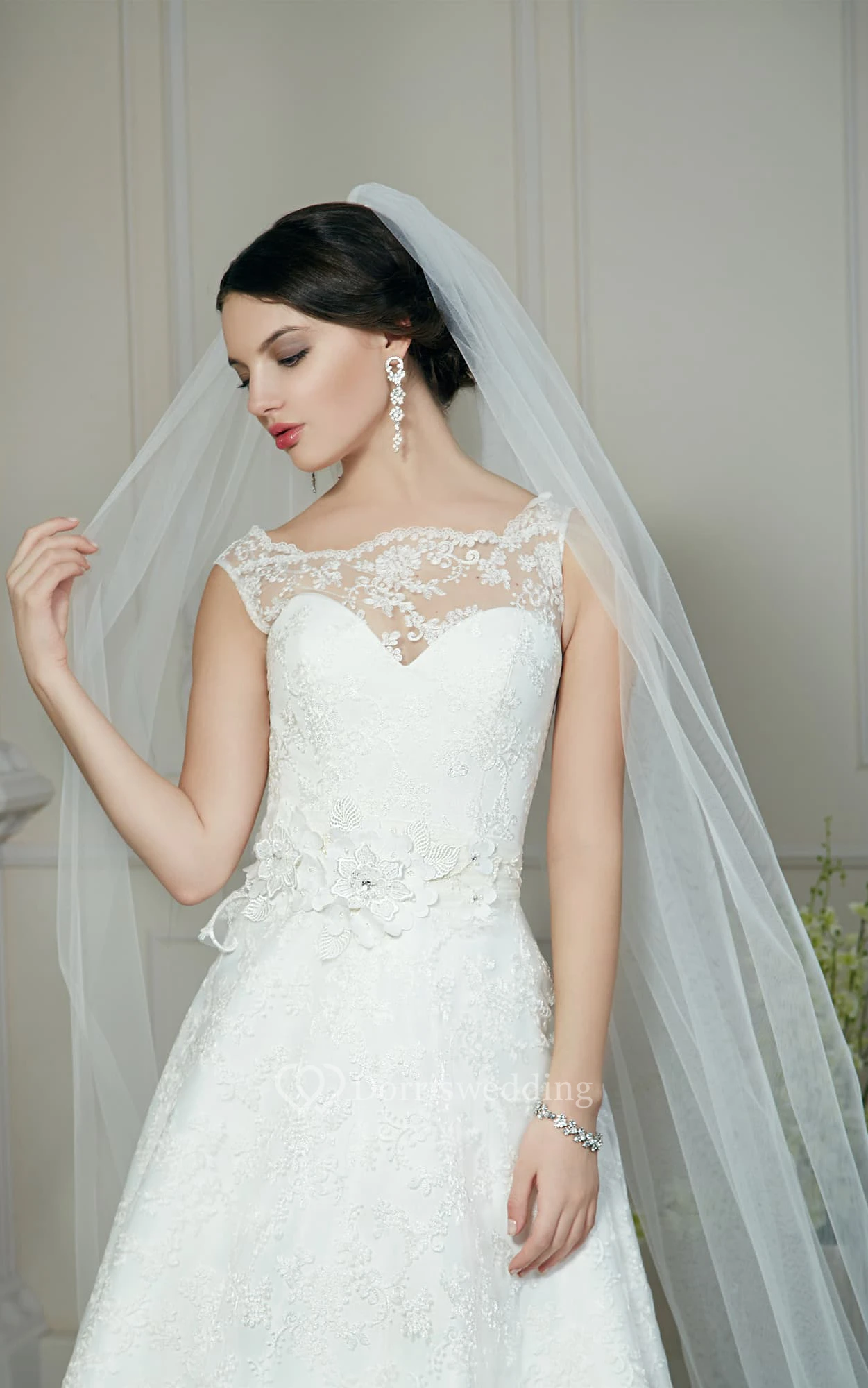 • Hemline/Train: Floor-length, Sweep/Brush Train