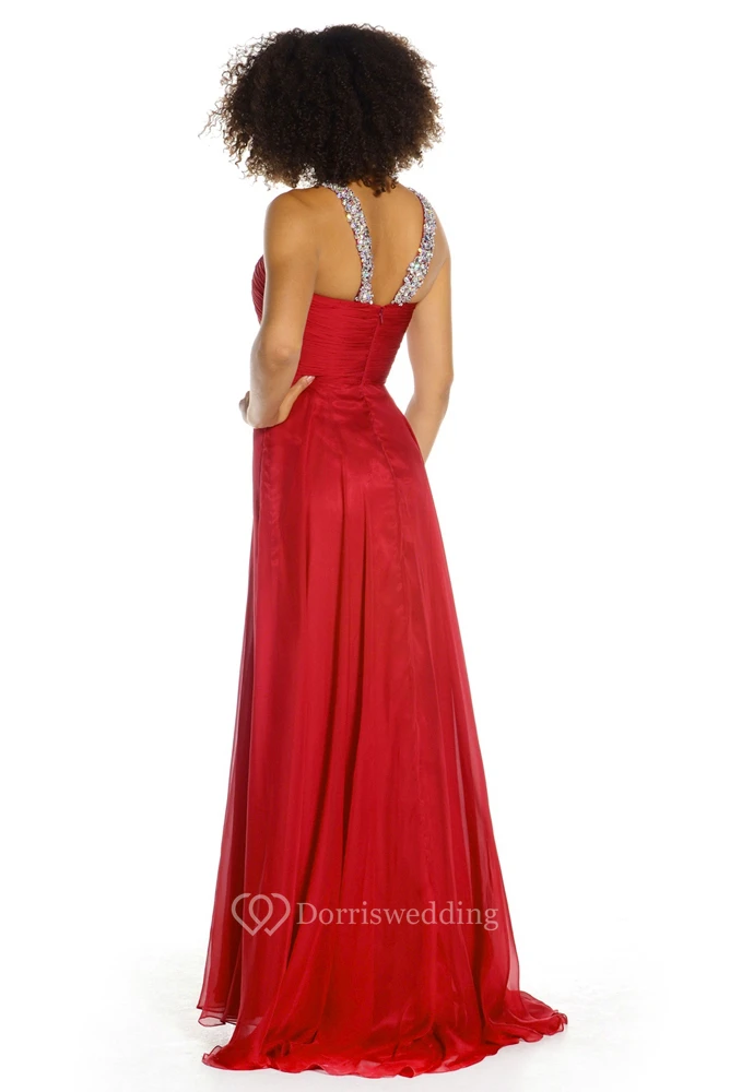A-Line Floor-Length Beaded Sleeveless Chiffon Prom Dress With Zipper Back And Pleats