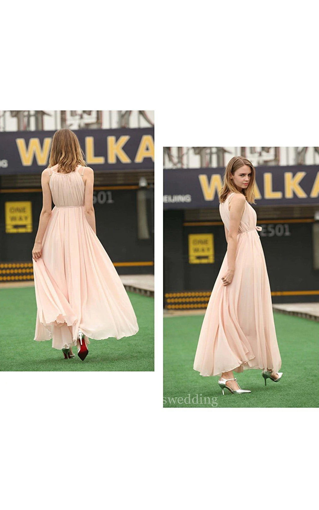 A-line Floor-length Halter sleeveless Chiffon Pleats Dress