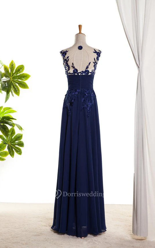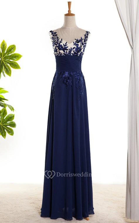 A-line Floor-length Illusion Embroidery Lace Chiffon Dress