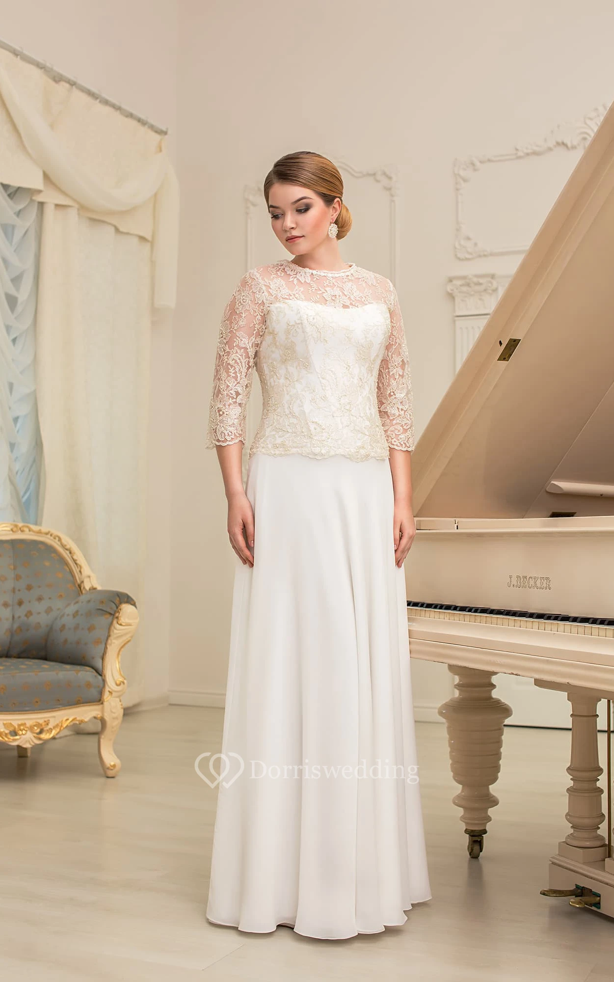 It is very goregous! When measuring, don't measure under the chest as stated, measure below the chest (there is a difference!) I wish I had know that, but it still fits, it is just a tad too long now, but does not drag on the floor. Also, I wish there had been some communication from the seller during the making process. It is always good to double-check things, especially when custom-making something so important. Other than those things, the dress is beautiful, I feel like a real bride now!