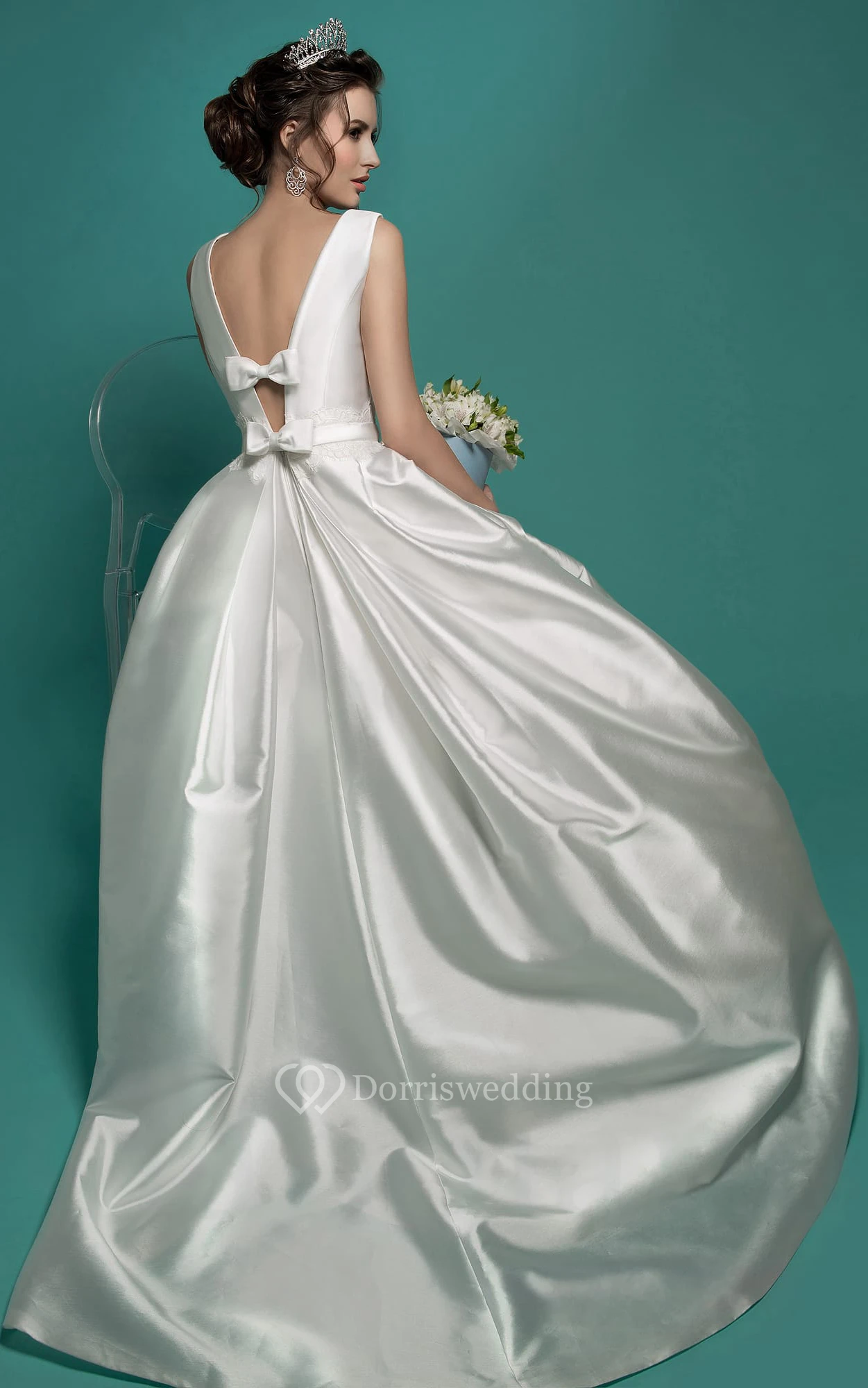 It's exactly as described. Sizes are on point as well. It was good quality material! The satin wedding dress is pretty and fit well. I'm a bigger girl. I will be ordering five more to have my bridesmaids wear them in my wedding!!! Beautiful dresses and perfect for my country wedding!