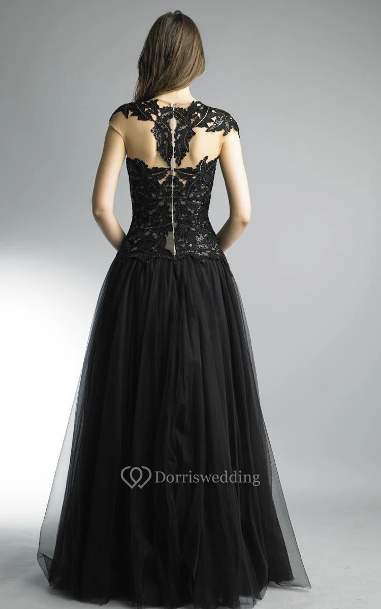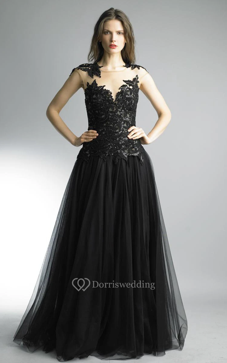 A-line Floor-length Jewel Sleeveless Tulle Illusion Dress