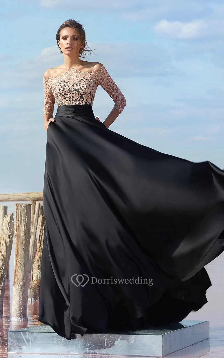 A Line Floor Length Off The Shoulder 3 4 Length Sleeve Chiffon Keyhole Dress