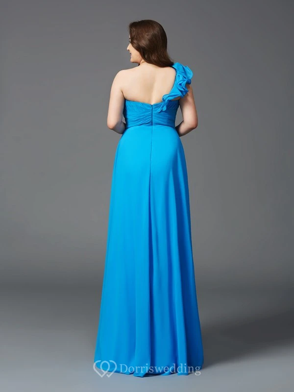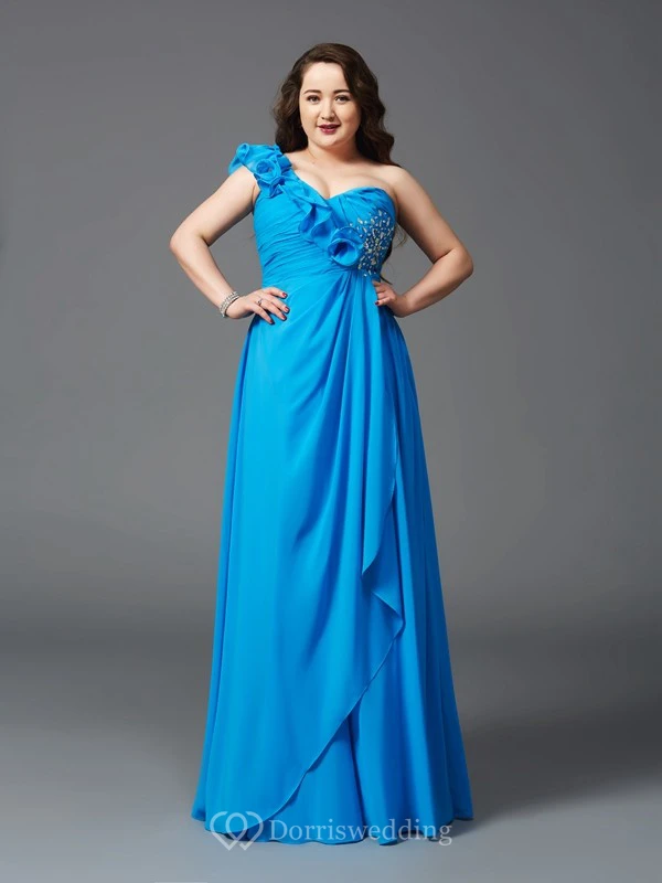A-line Floor-length One-shoulder Chiffon Flower(s) Draping Beading Dress