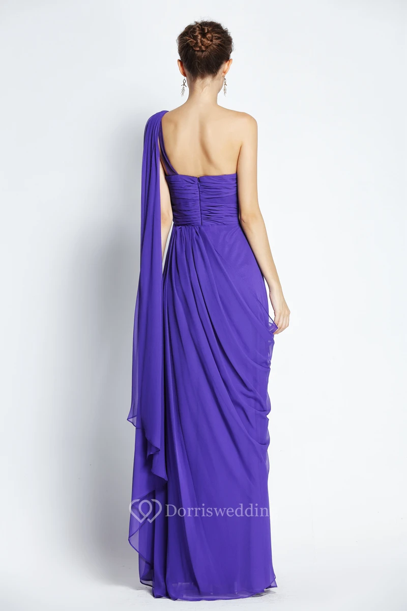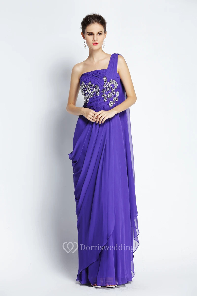 A-Line Floor-length One-shoulder Chiffon Sleeveless Prom Dress with Beading and Draping