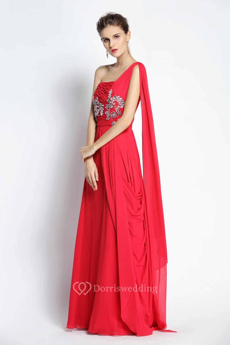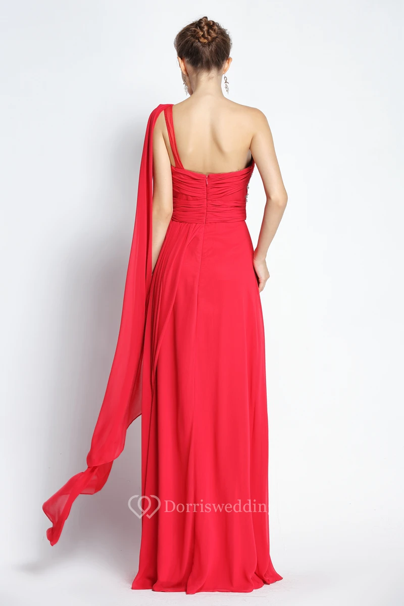 A-Line Floor-length One-shoulder Chiffon Sleeveless Prom Dress with Beading and Draping
