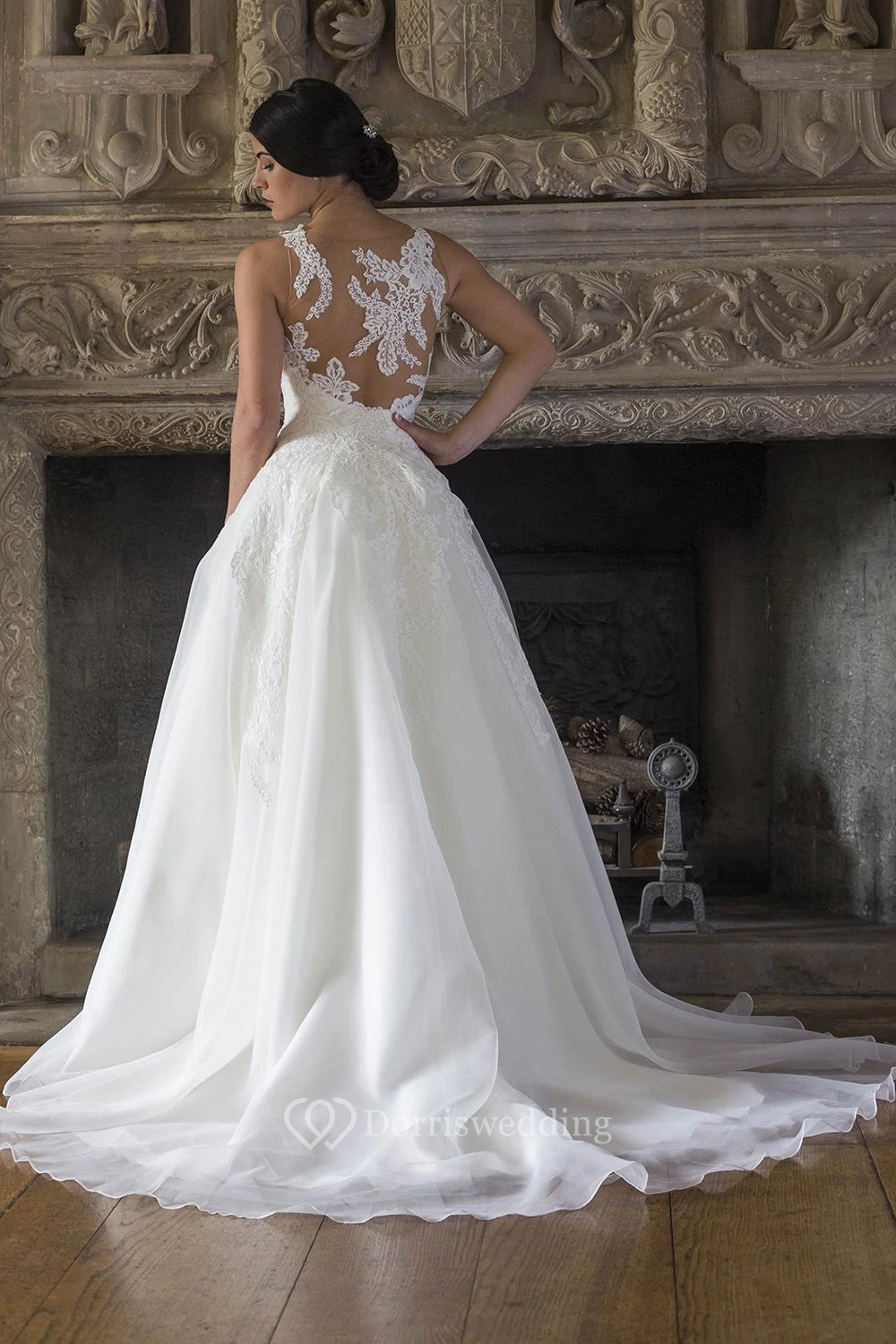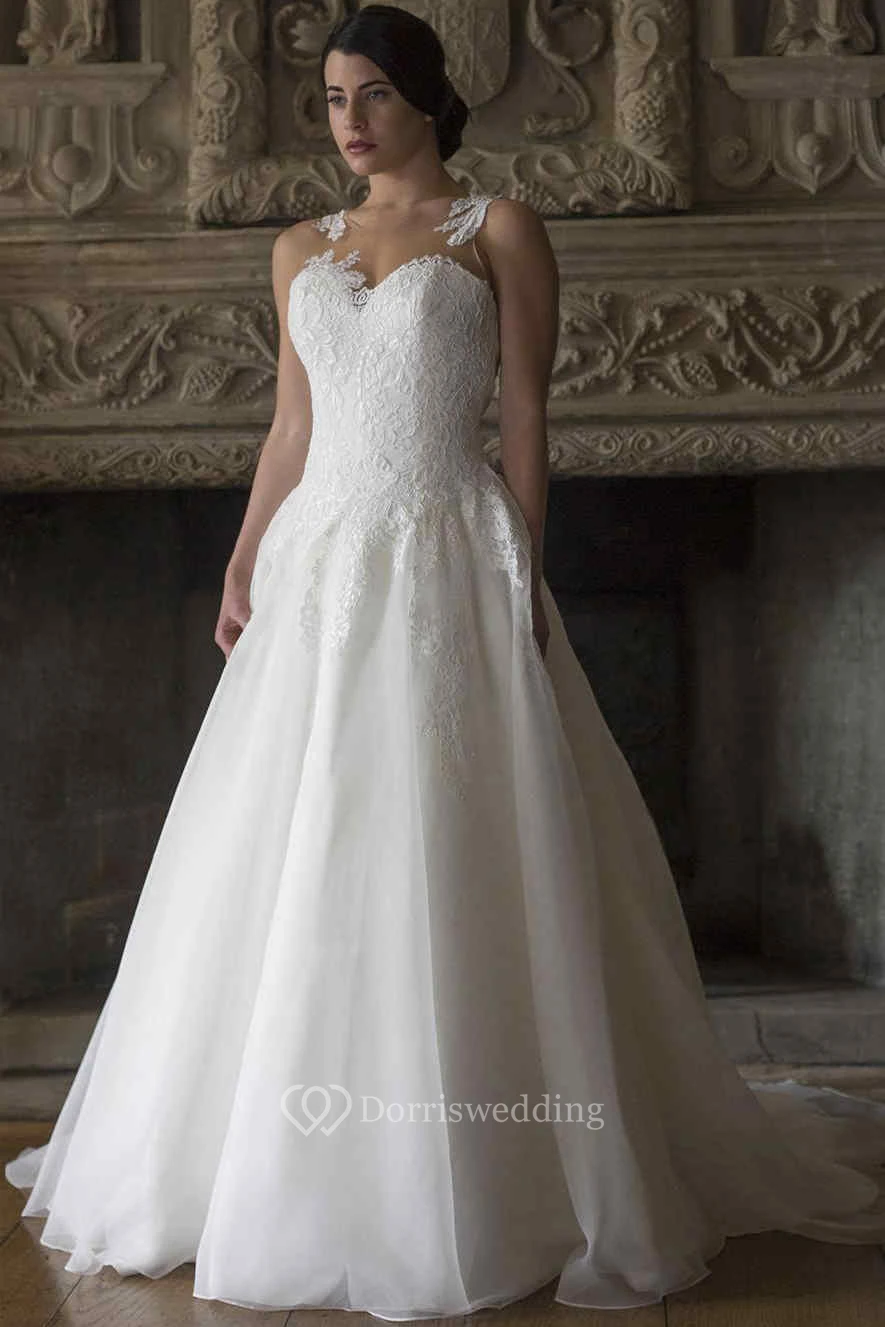A-Line Floor-Length Scoop-Neck Appliqued Sleeveless Lace Wedding Dress