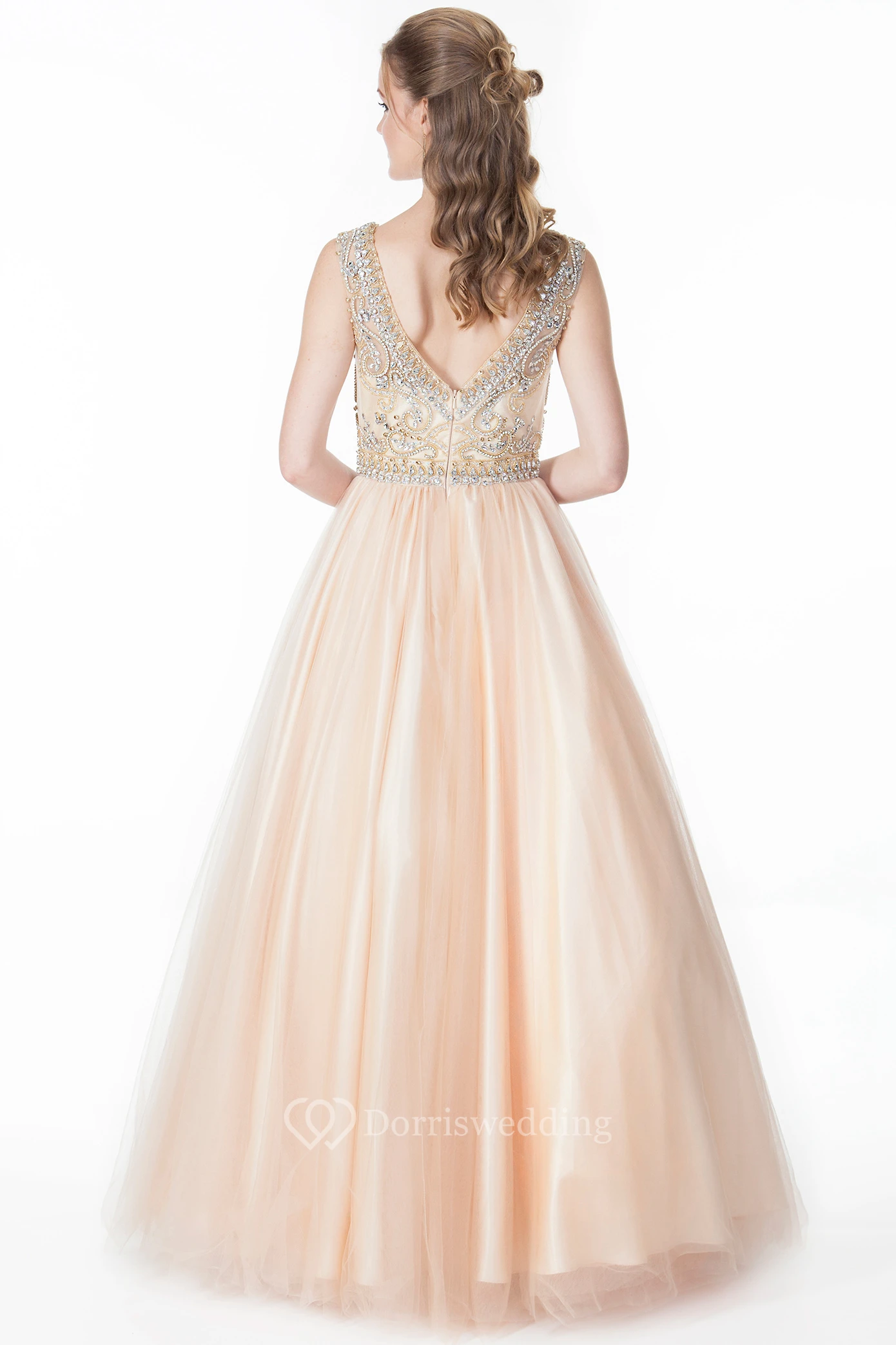 • Hemline/Train: Floor-length