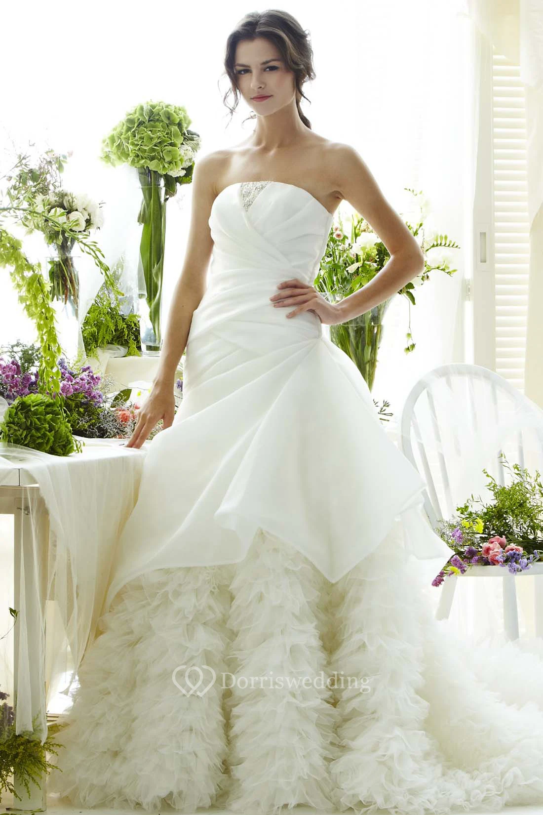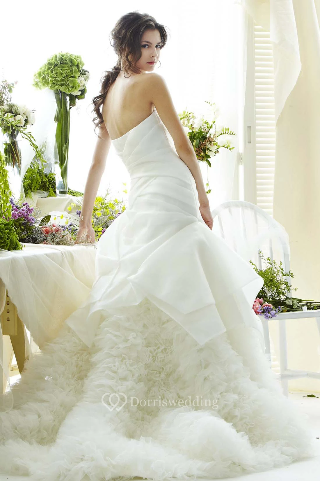 A-Line Floor-Length Sleeveless Strapless Ruffled Satin Wedding Dress With Backless Style And Beading