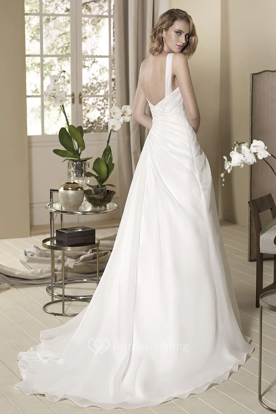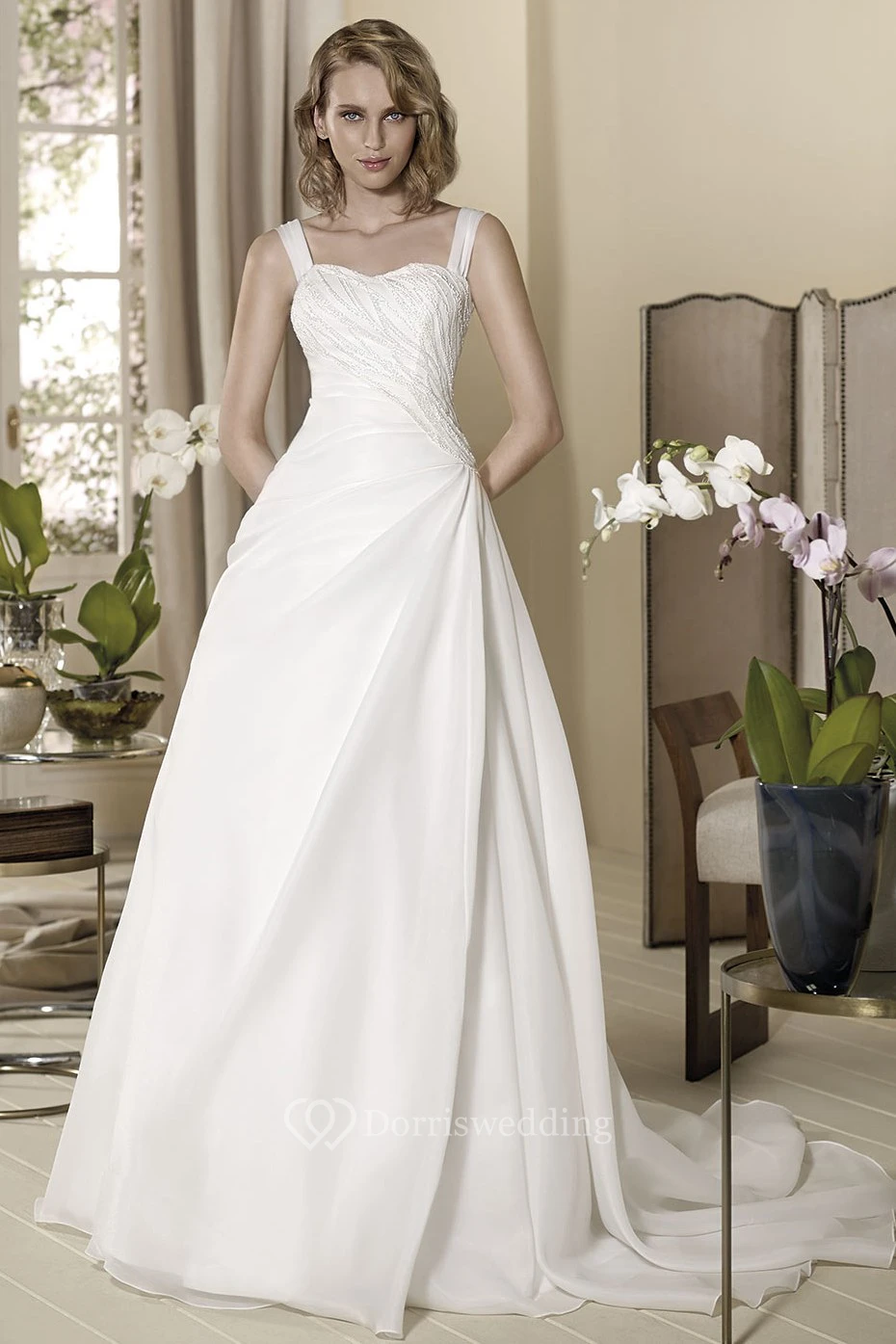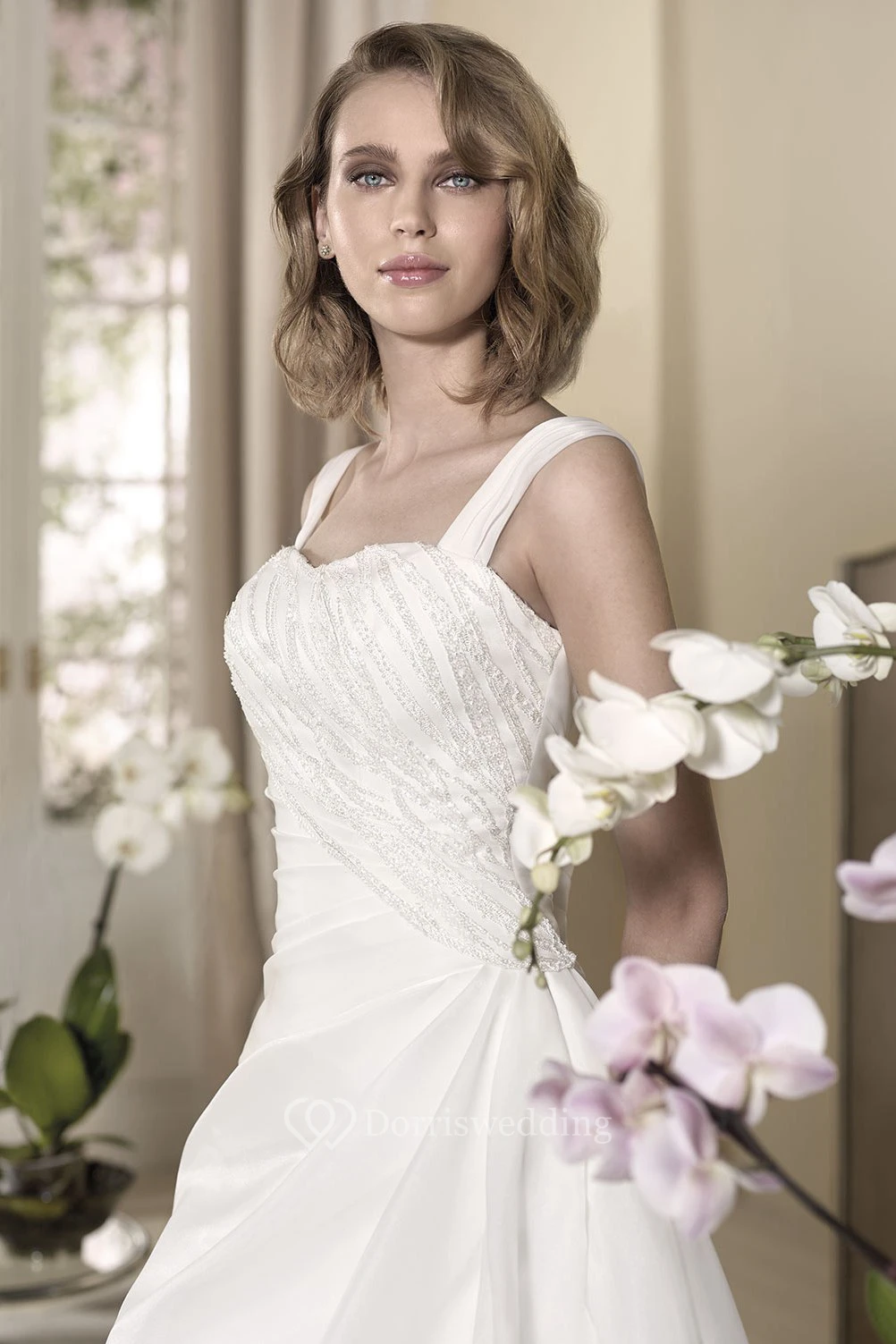 A-Line Floor-Length Sleeveless Strapped Beaded Wedding Dress With Side Draping