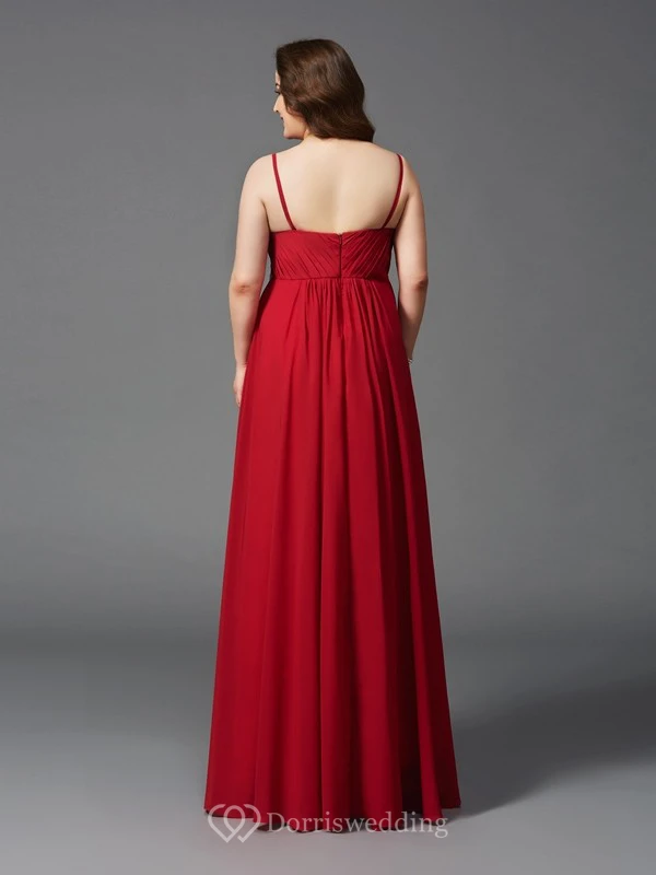 A-line Floor-length Spaghetti Sleeveless Chiffon Ruching Waist Jewellery Zipper Dress