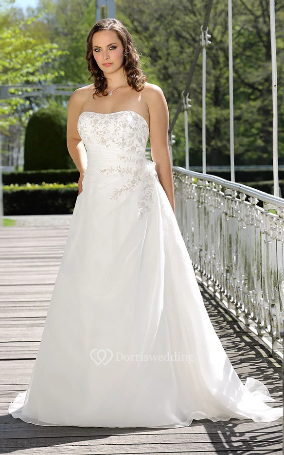 • Hemline/Train: Floor-length, Sweep/Brush Train