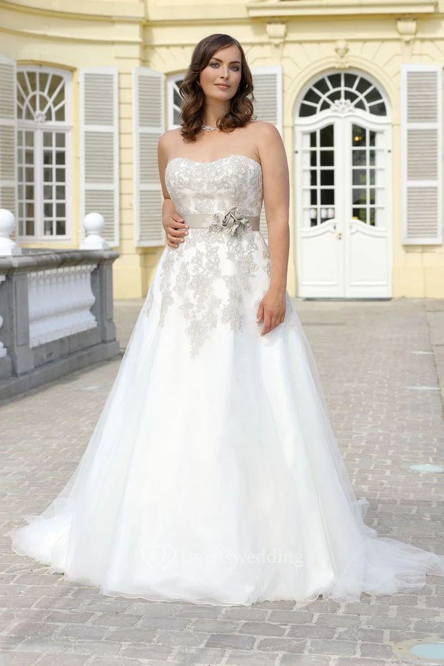 • Hemline/Train: Floor-length, Sweep/Brush Train