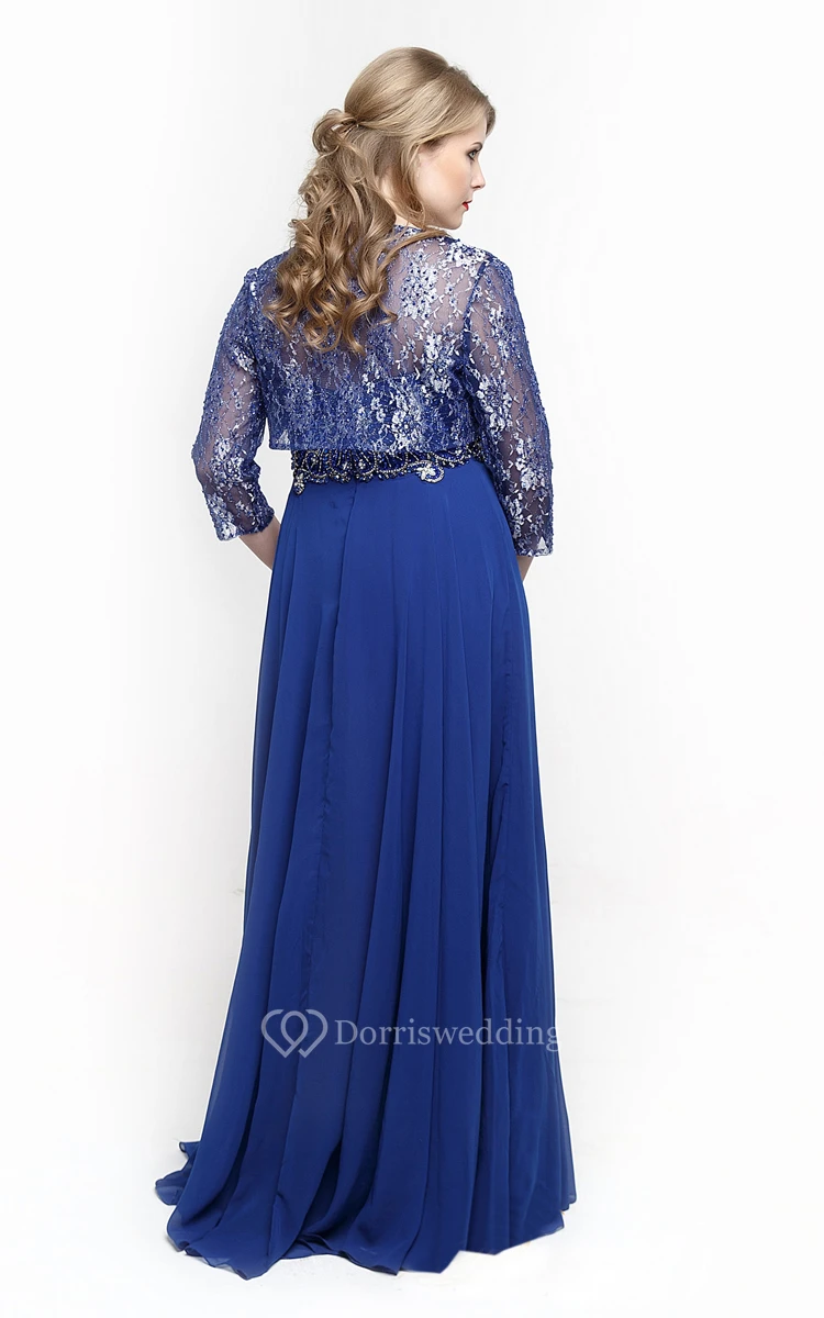 A-line Floor-length Sweetheart 3-4 Length Sleeve Chiffon Beading Dress