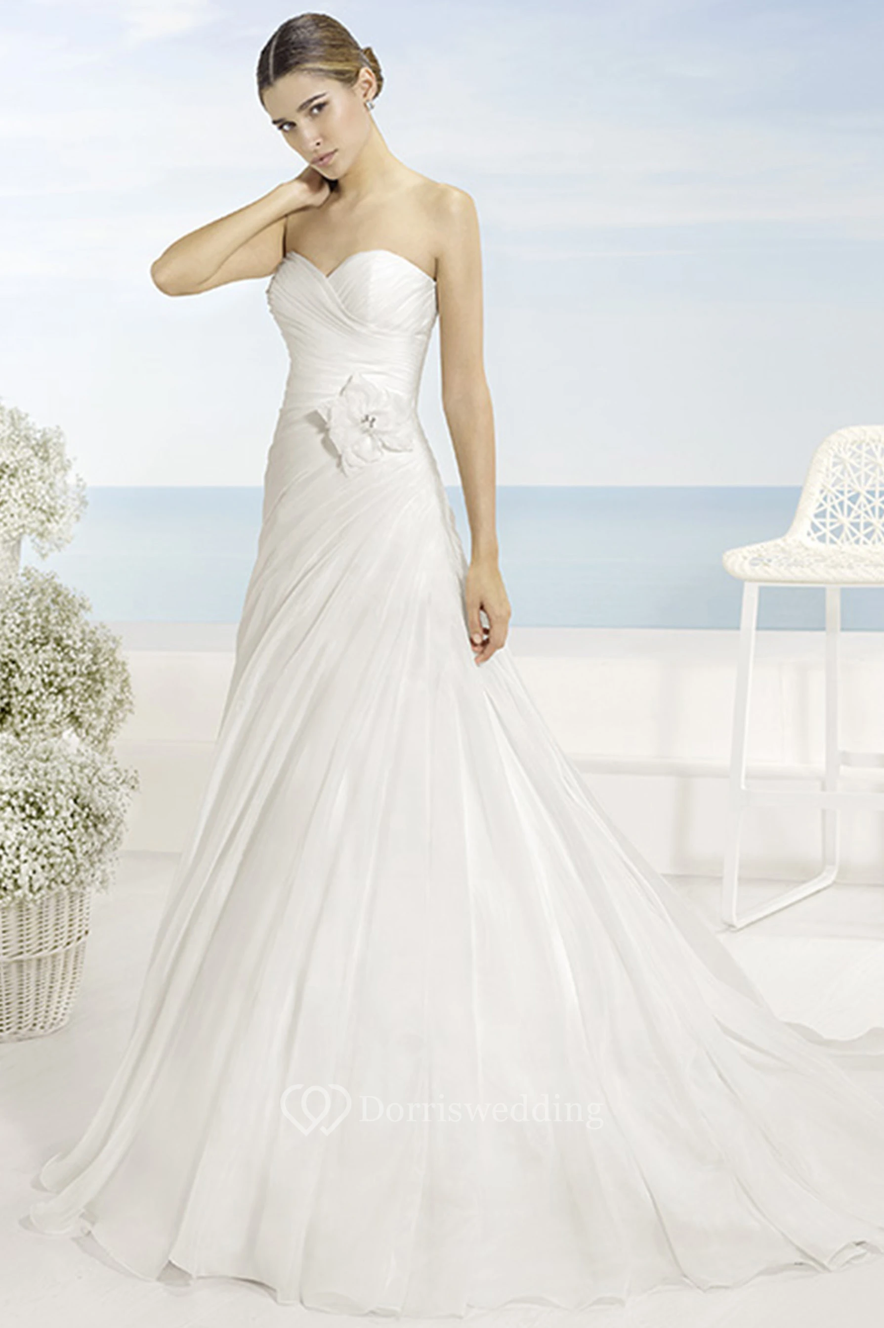 A-Line Floor-Length Sweetheart Organza Wedding Dress With Criss Cross And Cape