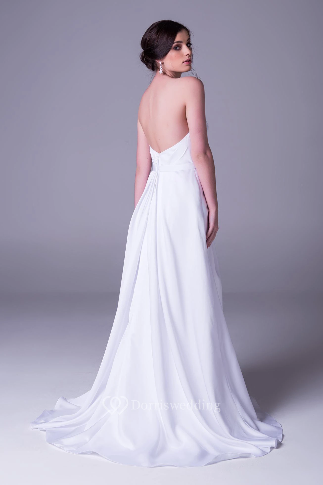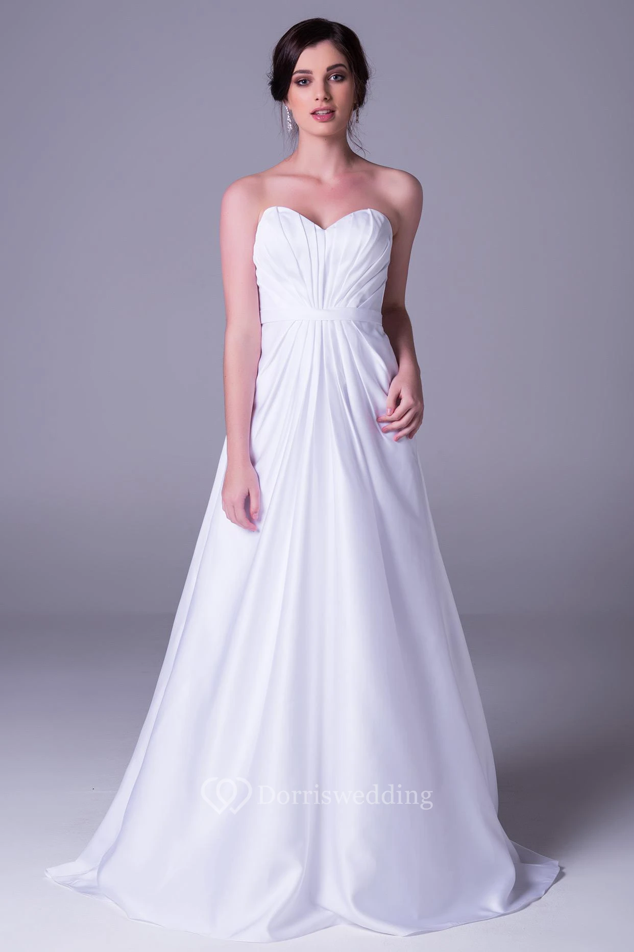A-Line Floor-Length Sweetheart Satin Wedding Dress With Ruching And Deep-V Back
