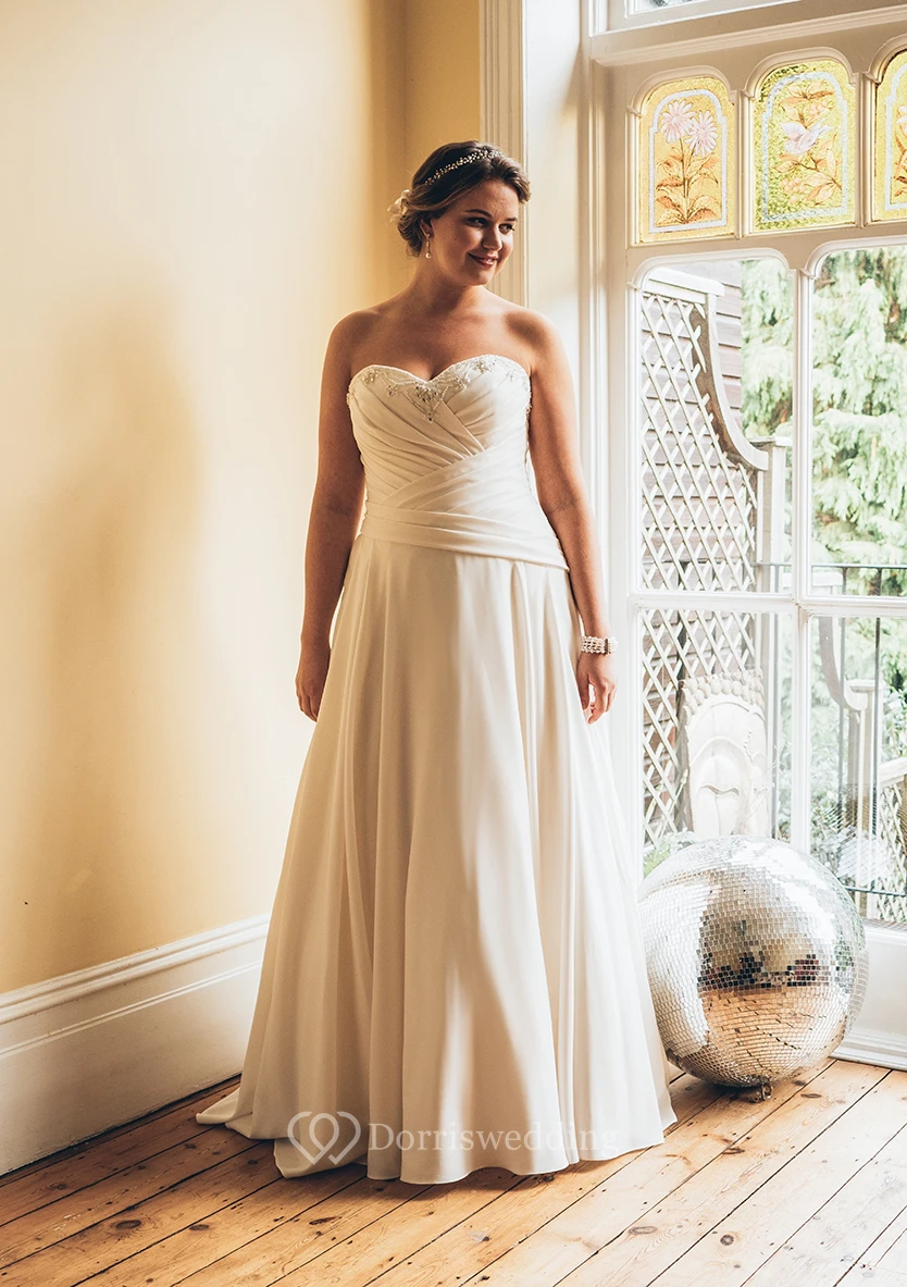 • Hemline/Train: Floor-length, Sweep/Brush Train
