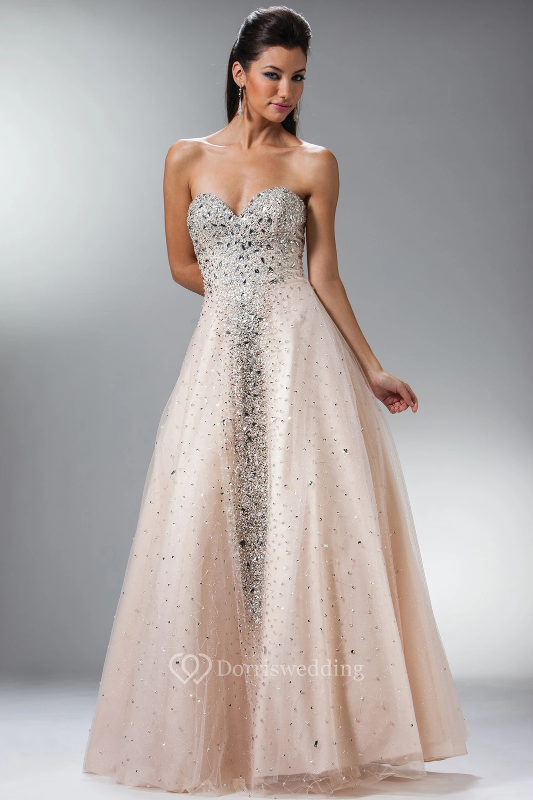 A-Line Floor-Length Sweetheart Sleeveless Dress With Crystal Detailing
