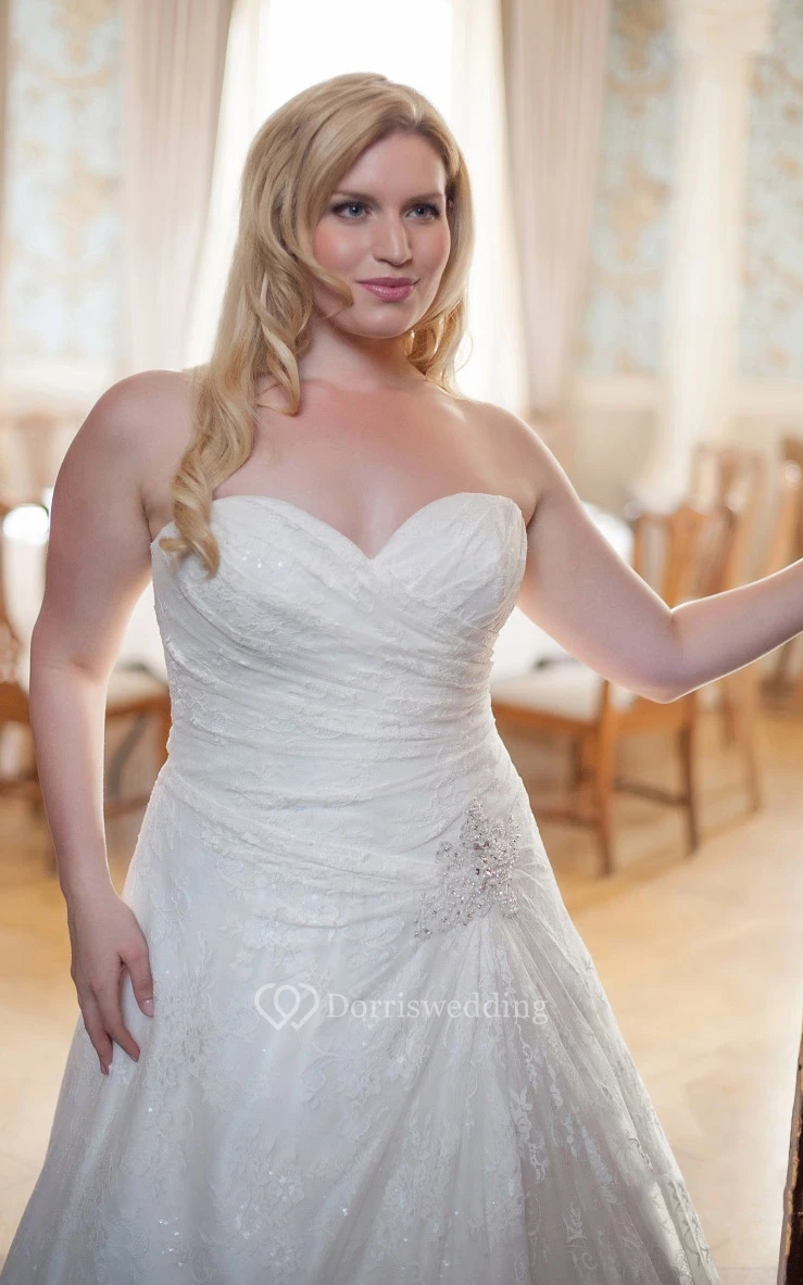 A-Line Floor-Length Sweetheart Sleeveless Lace Beading Criss Cross Court Train Beading Dress