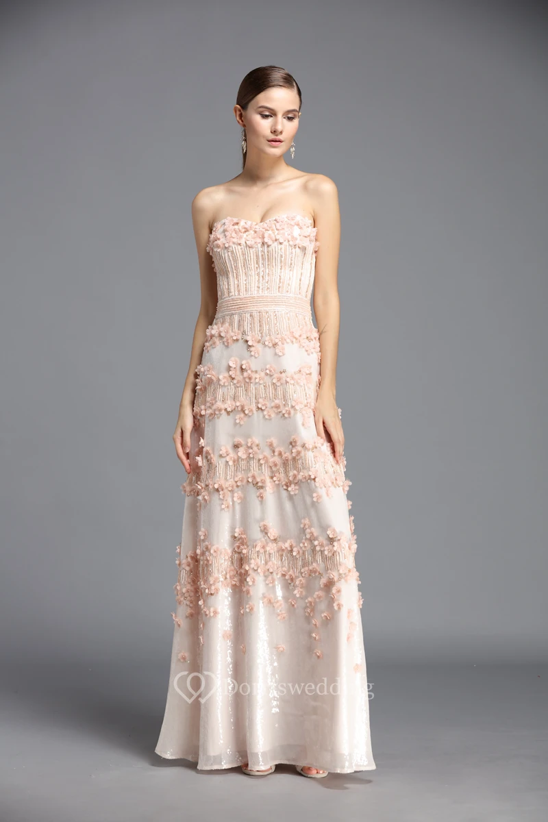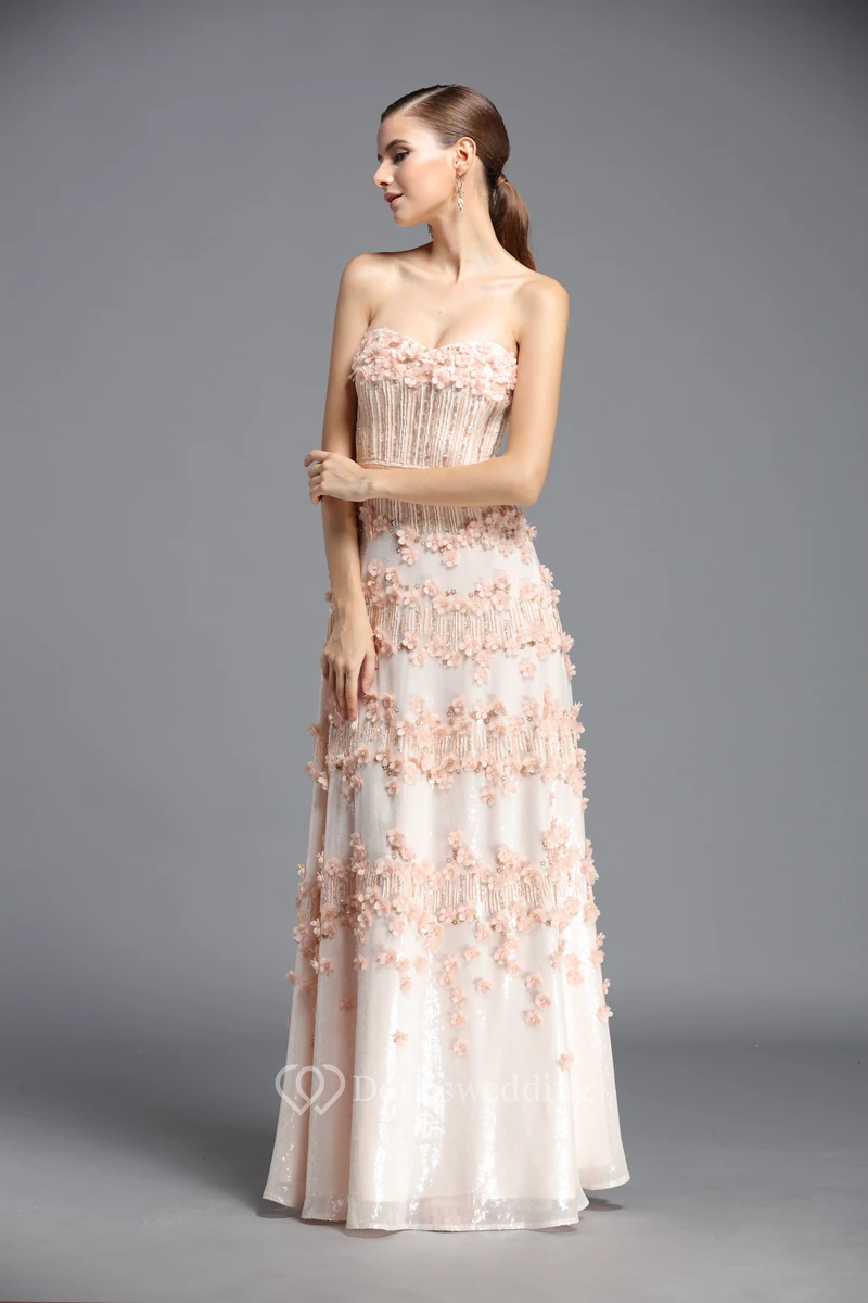 A-Line Floor-length Sweetheart Sleeveless Prom Dress with Appliques and Flowers