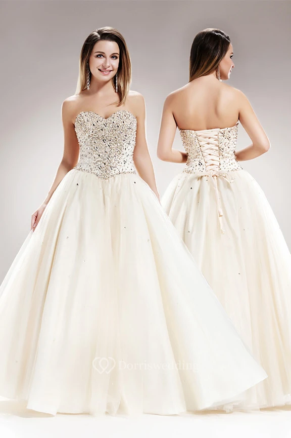 A-Line Floor-Length Sweetheart Sleeveless Satin Lace-Up Dress With Beading