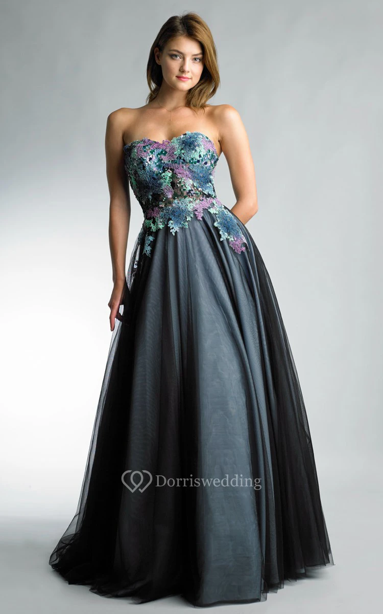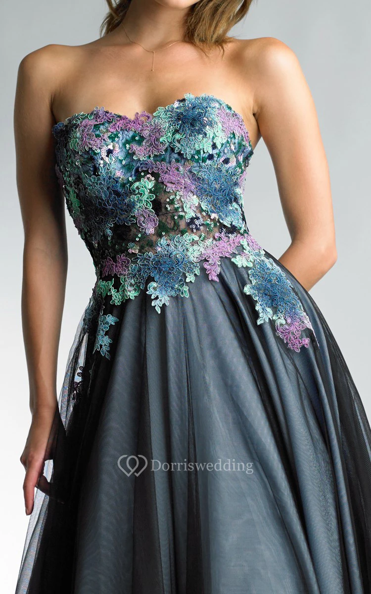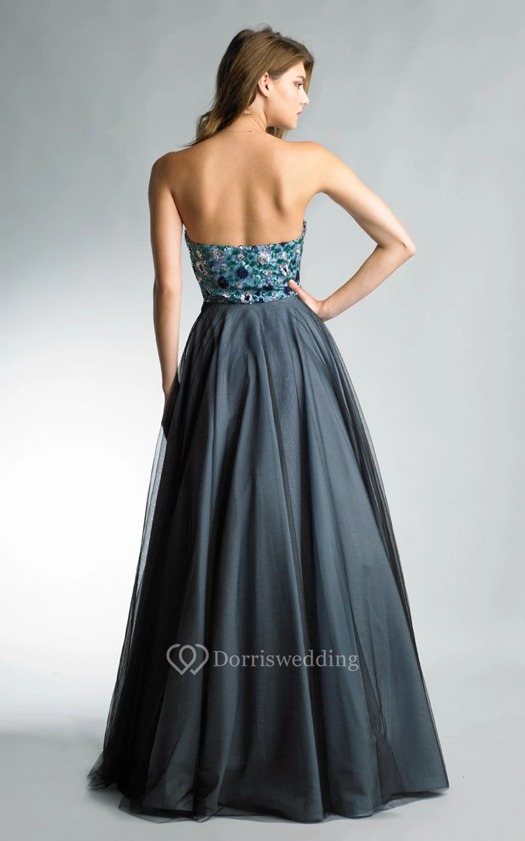 A-line Floor-length Sweetheart Sleeveless Tulle Backless Dress