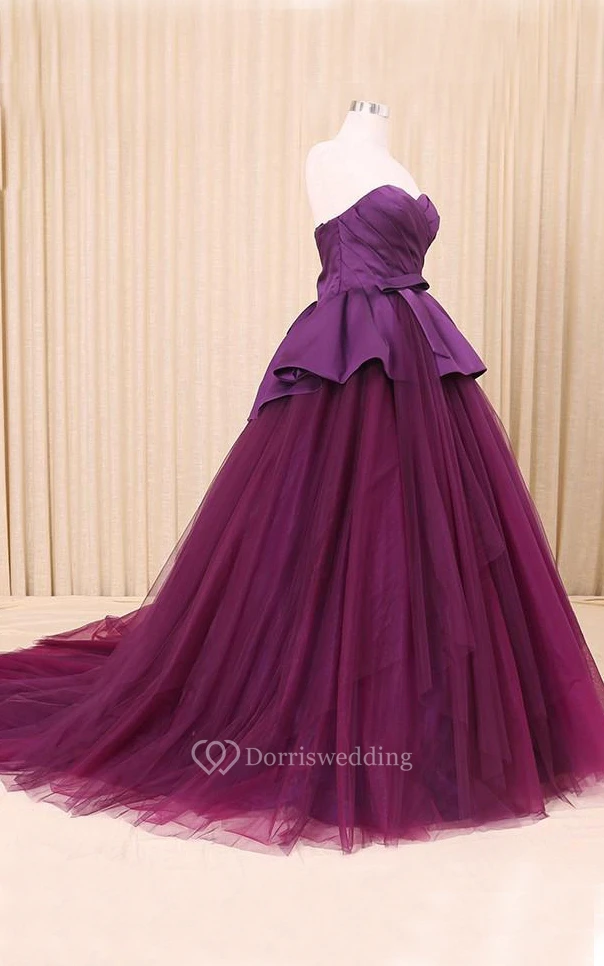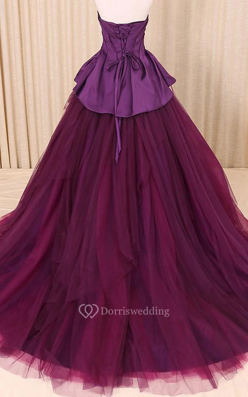 A-Line Floor-Length Sweetheart Sweep Train Zipper Corset Back Tulle Lace Satin Dress