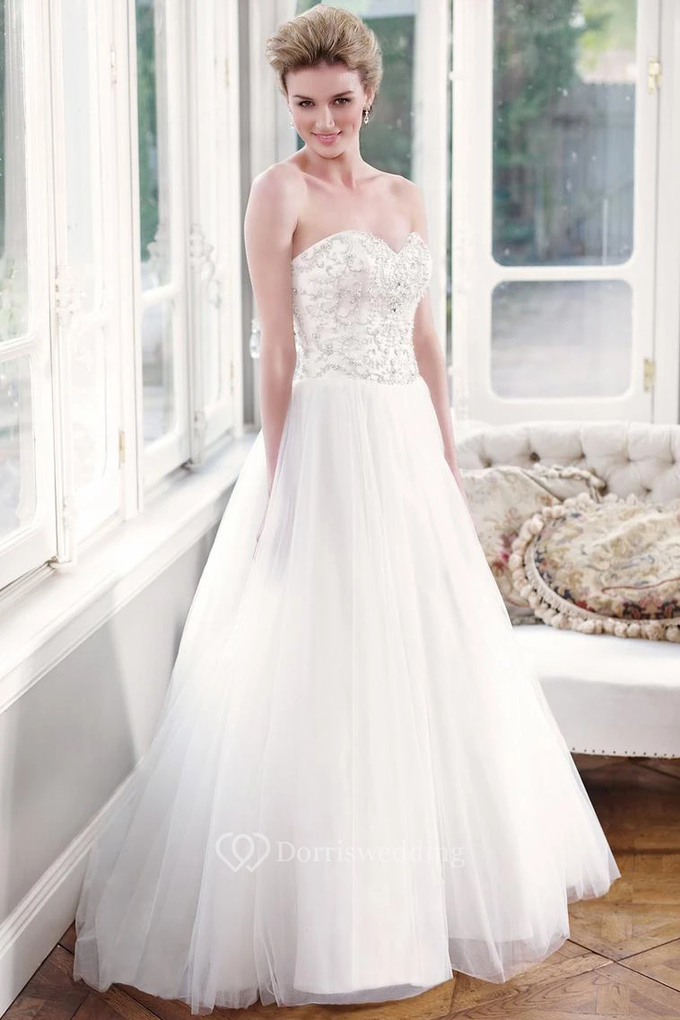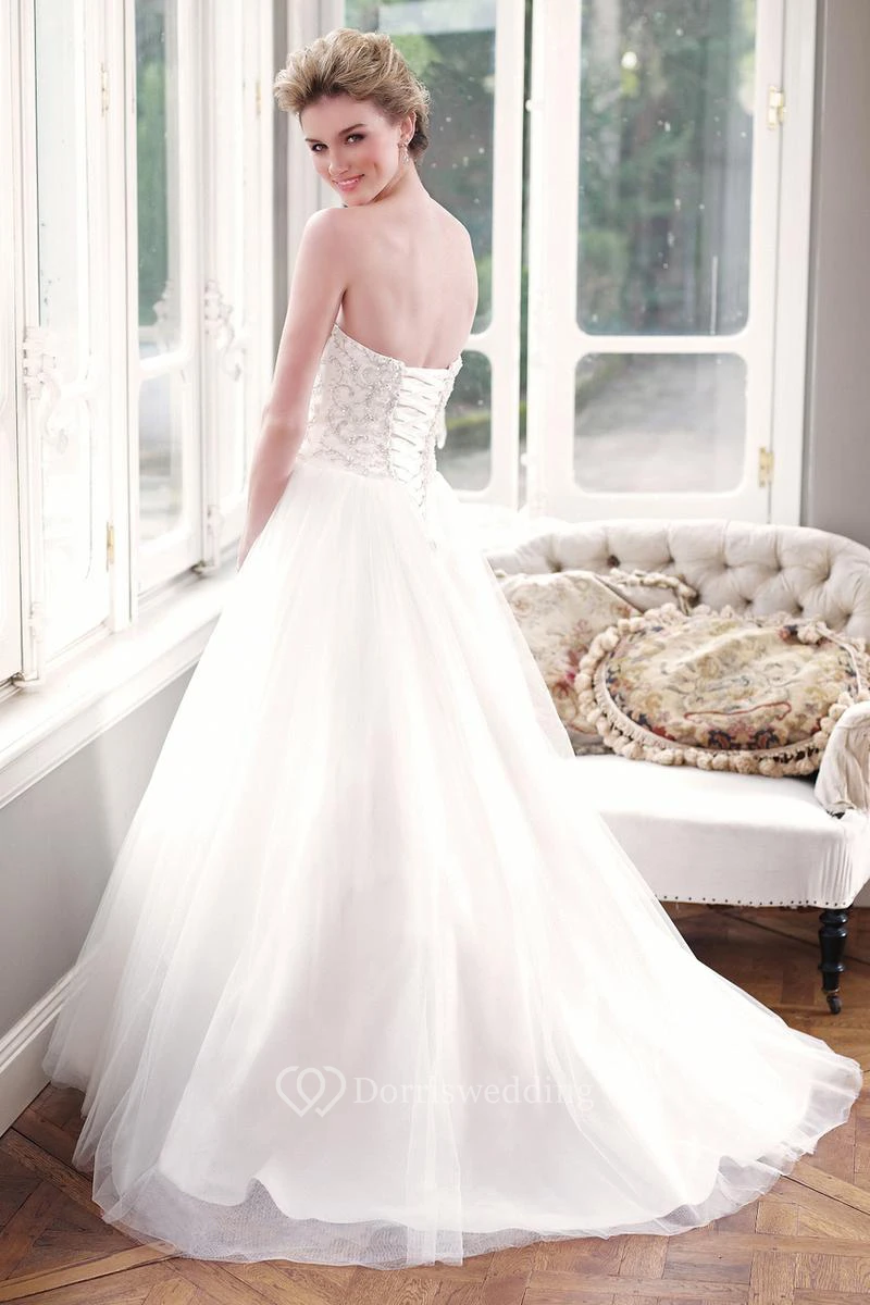 A-Line Floor-Length Sweetheart Tulle Wedding Dress With Beading And Corset Back