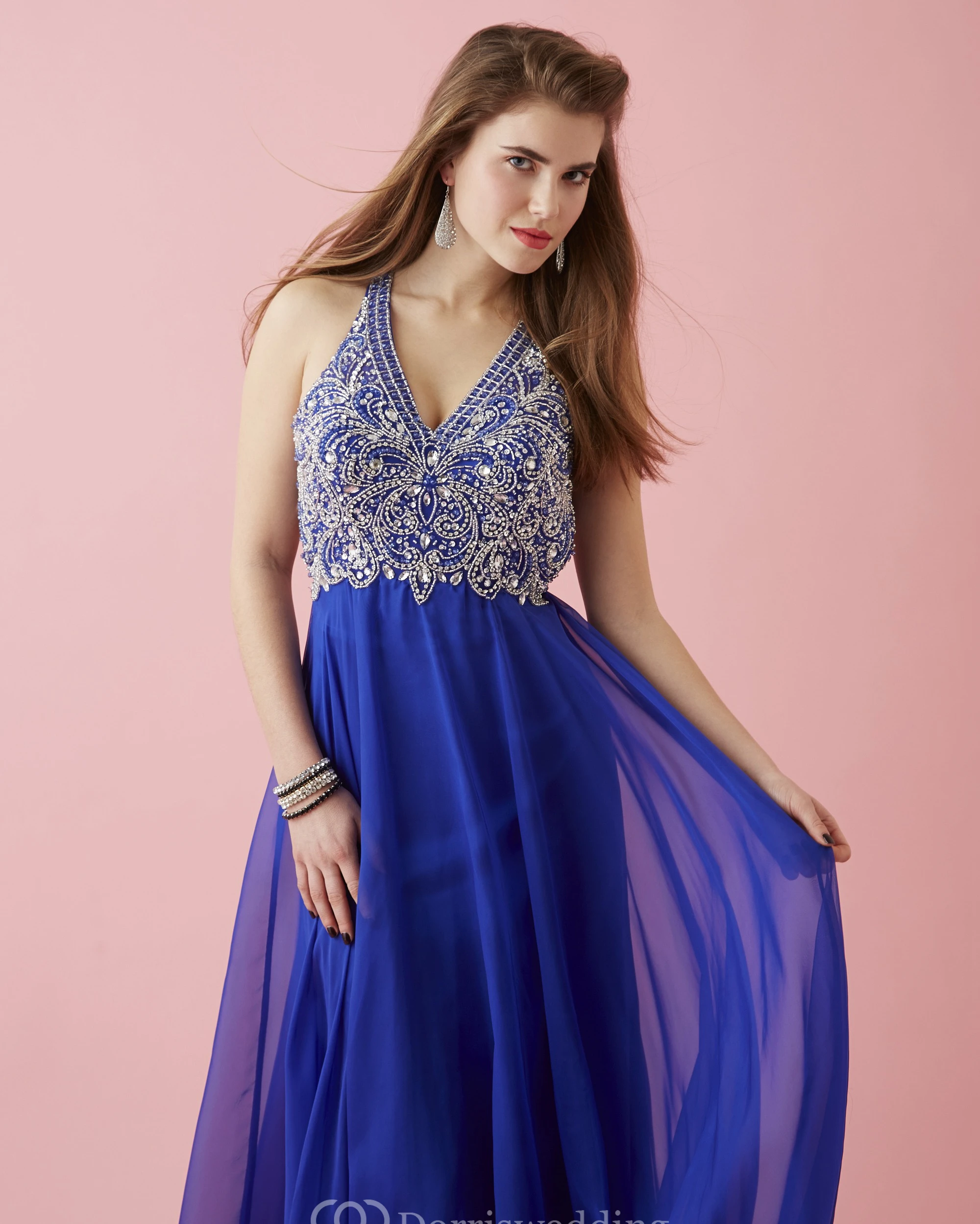 A-Line Floor-Length V-Neck Sleeveless Chiffon Straps Dress With Beading