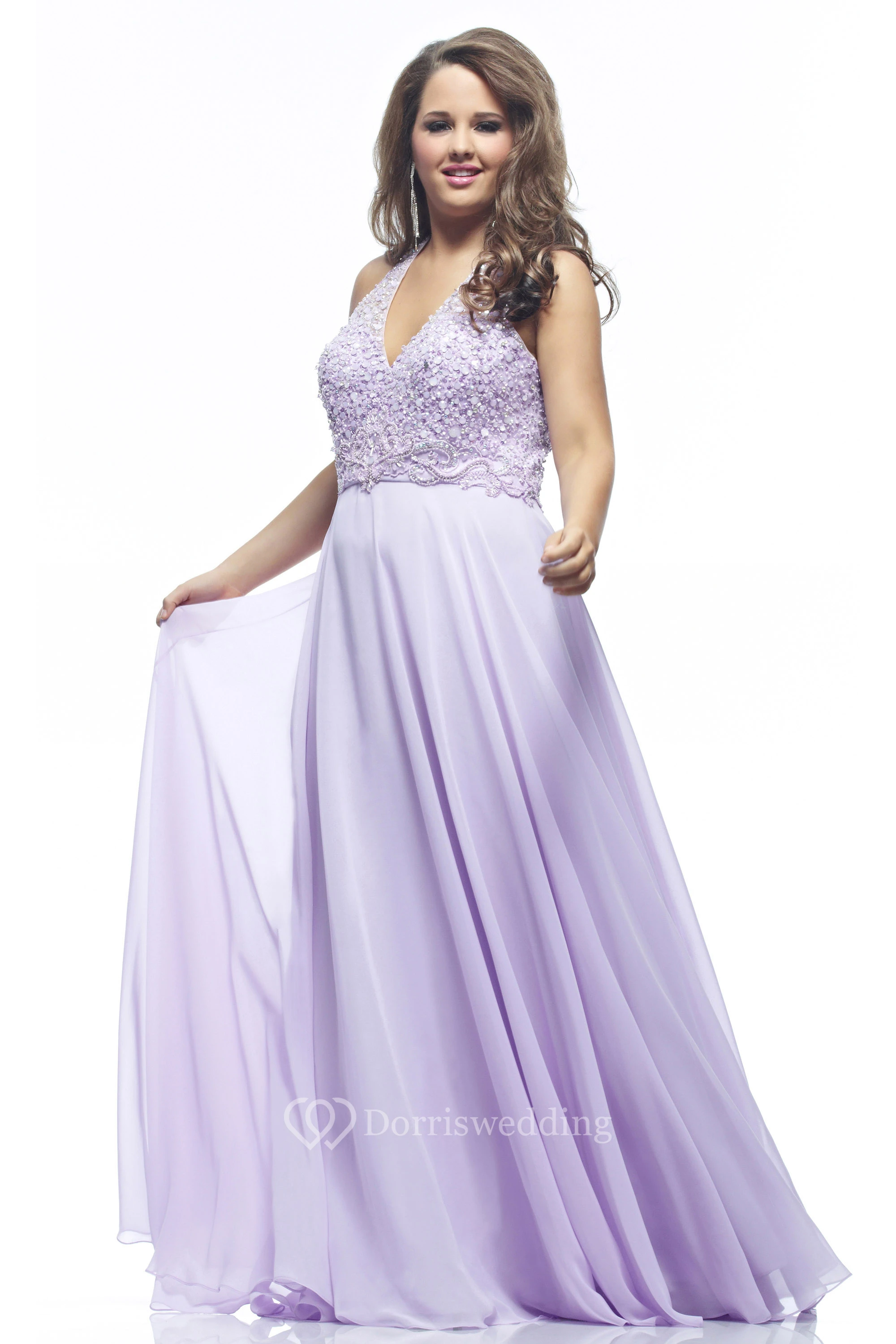 • Hemline/Train: Floor-length, Sweep/Brush Train