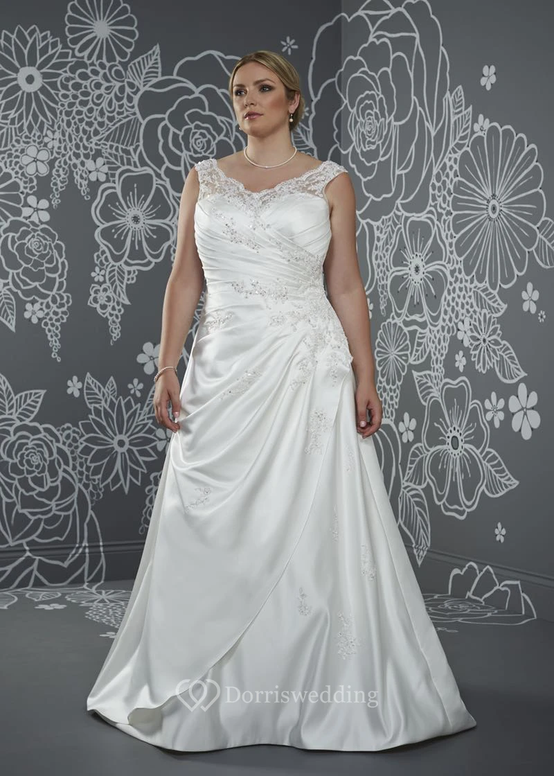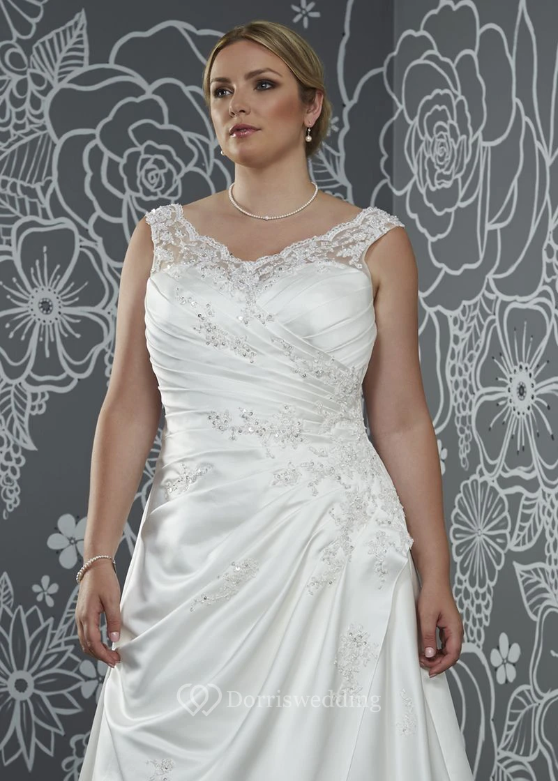 • Hemline/Train: Floor-length, Sweep/Brush Train