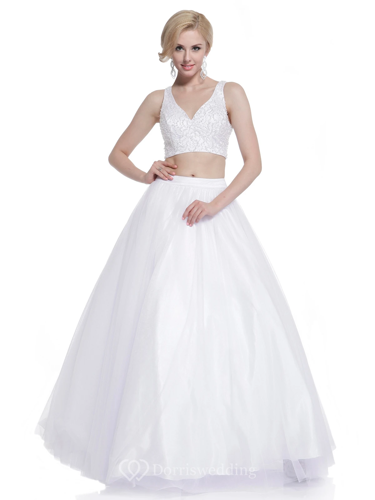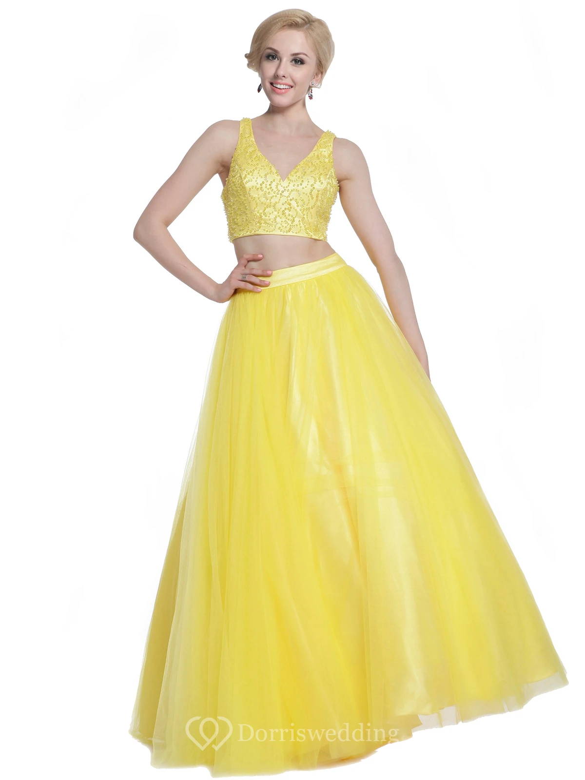 A-Line Floor-Length V-Neck Sleeveless Satin Zipper Dress With Beading