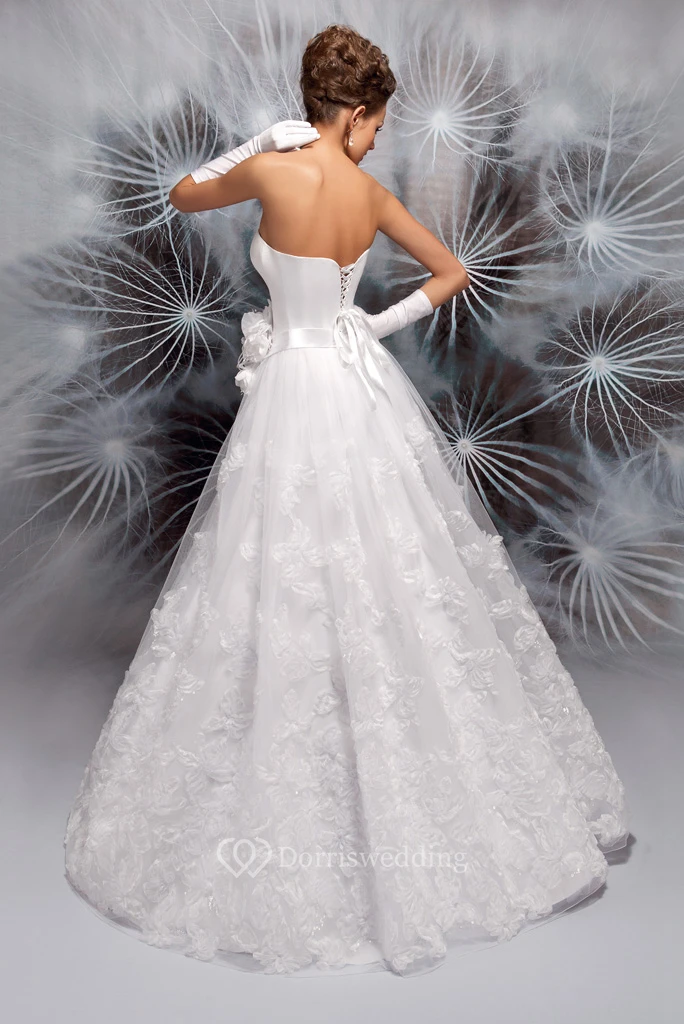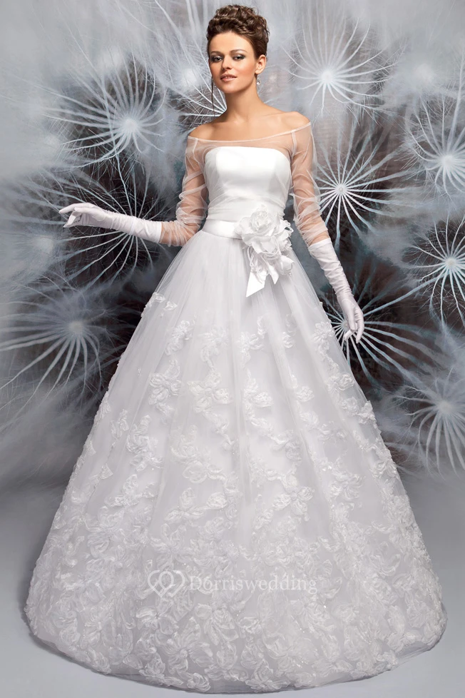 A-Line Floral Long Sleeve Off-The-Shoulder Tulle Wedding Dress