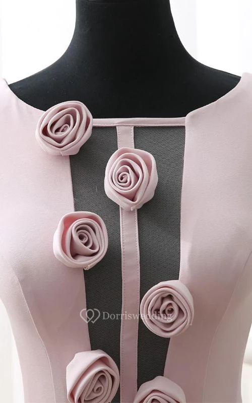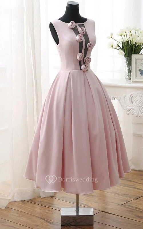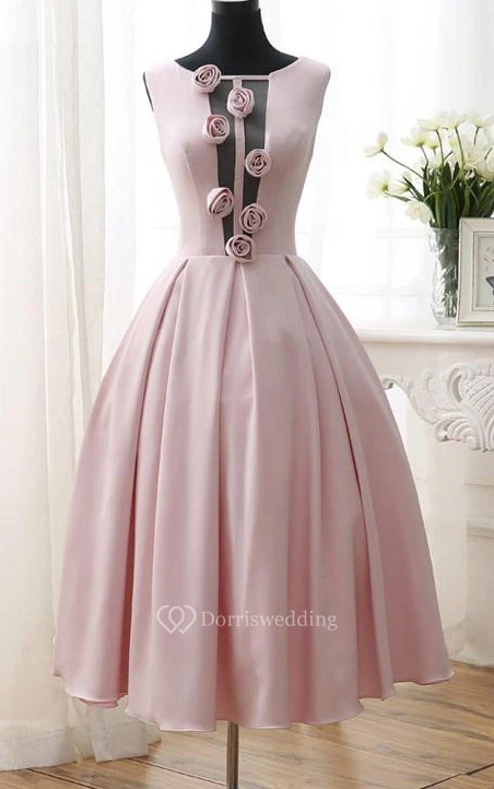A-Line Flowers Tea-Length Open Back Prom Dress