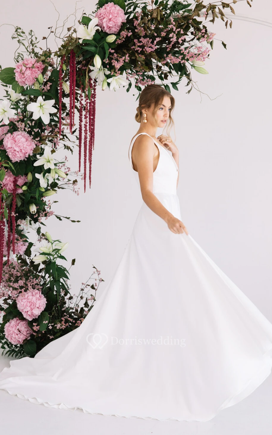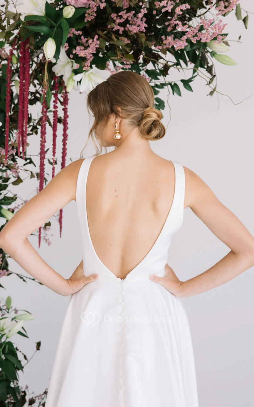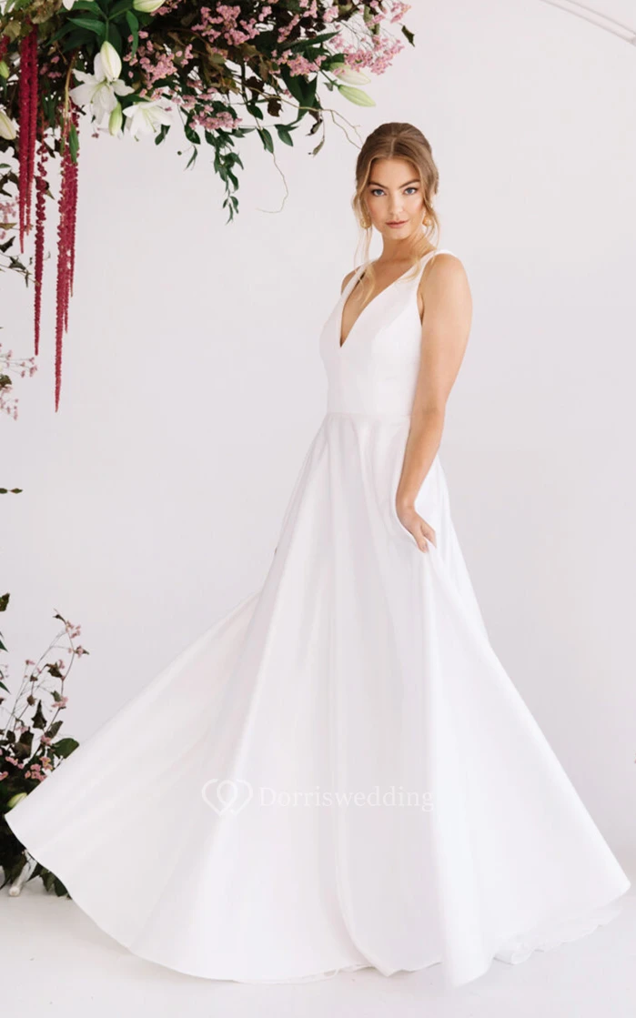 A Line Glamorous V-neck Wedding Dress with Pockets and Train